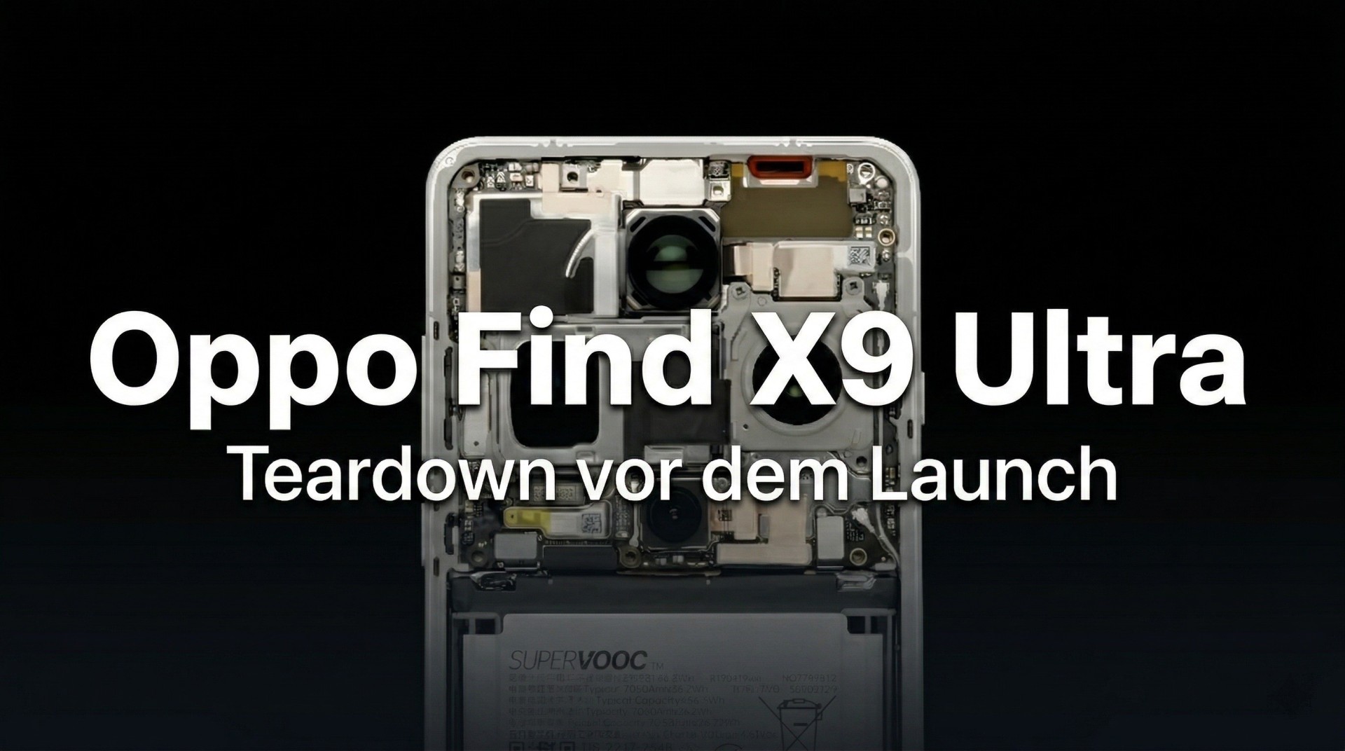 Trotz der massiven Kameramodule gelingt es Oppo, im Gehäuse des Oppo Find X9 Ultra einen Akku mit einer Kapazität von 7050mAh unterzubringen. Dies deutet auf die Nutzung einer hohen Energiedichte hin, um den Platzbedarf der Optik zu kompensieren. Im Video wirkt der Akku allerdings einzellig, was bedeuten könnte, dass das Oppo Find X9 Ultra in der EU Version einen kleineren Akku bekommt. Andererseits könnte auch speziell für das EU-Modell ein zweizelliger Akku verbaut werden. Hier muss man noch abwarten, was kommt.