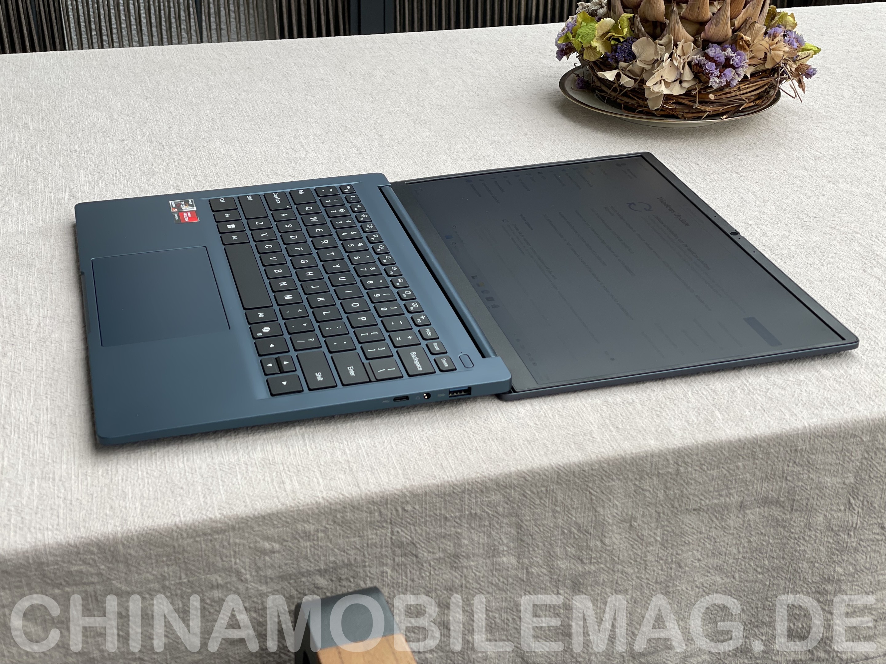 Die Drahtlosverbindung erfolgt über WiFi 6 und Bluetooth 5.2. Der Akku fasst 55Wh und wird über das mitgelieferte 65W USB-C Netzteil geladen. Damit ist der Akku deutlich angewachsen, was für eine relativ gute Laufzeit sorgen dürfte. Mit Abmessungen von 312,9 x 222,5 x 15,95mm und einem Gewicht von rund 1,02kg laut Hersteller positioniert sich das Gerät im portablen Segment. Als Betriebssystem ist Windows 11 Pro inklusive Microsoft Office (mit Lizenz) vorinstalliert.