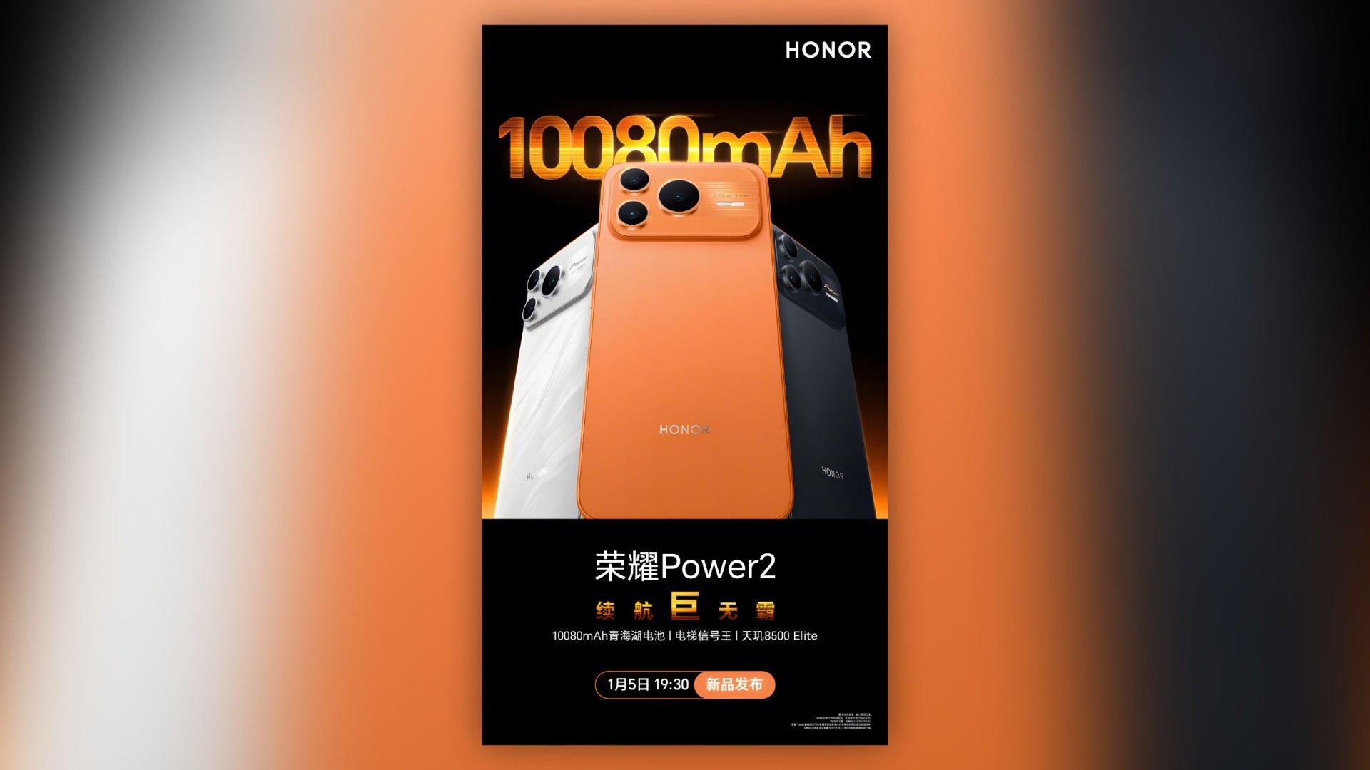 Honor setzt seinen Weg fort, Smartphones mit außergewöhnlich großen Akkus anzubieten. Nach der kürzlich vorgestellten Honor Win Serie, die sich an Gaming-Enthusiasten richtet, folgt nun mit dem Honor Power2 ein Mittelklasse-Modell, das ebenfalls auf einen Akku mit über 10.000mAh Kapazität setzt. Der chinesische Hersteller hat das Gerät offiziell angeteasert und den Launch für den 5. Januar 2025 um 19:30 Uhr Peking Zeit angekündigt.