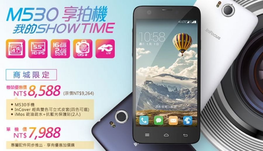 Hier stehen anderen Herstellern also weiterhin alle Türen offen, und mit InFocus gibt es eine weitere Marke, welche sich dieser Aufgabe annehmen möchte. Bei InFocus handelt es sich um eine Eigenmarke von Foxconn, welche hauptsächlich in Taiwan und im weiteren asiatischen Raum vertreiben wird. Mit dem kommenden InFocus M530 will Foxconn allerdings erstmals auch internationale Aufmerksamkeit erhalten, und das Smartphone auch dementsprechend vertreiben. Schon zu Beginn des Jahres wurde bekannt, dass das Smartphone über einen MT6595M SoC verfügen soll, und weiterhin mit 2GB RAM, 16GB Speicher und einem 5" Display mit 720p Auflösung ausgestattet werden soll. Der Akku soll mit 3.100mAh ordentlich groß ausfallen, und noch dazu werden wohl zwei SIM Karten, LTE, NFC und die HotKnot Technologie von Mediatek unterstützt. Auch die Kamera soll überzeugen und mit optischer Bildstabilisierung (OIS) und einem zweifarbigen Dual-LED Blitz ausgestattet werden.