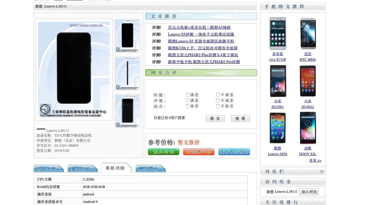 Lenovo hat sich in den letzten Monaten sichtlich Mühe gegeben, die Aufmerksamkeit wieder auf sich zu ziehen. Dafür hat man sich den Preiskampf mit Herstellern wie Xiaomi ausgesucht, welchen man auch wirklich in allen Preissegmenten durchzieht. Nun hat Lenovo wieder ein neues Mittelklasse Smartphone in der Mache, welches man wohl als Konkurrenz zum Redmi Note 7 auf dem Markt platzieren will. Das Lenovo L38111 (der genaue Name ist noch unbekannt), ist kürzlich in der Tenaa Datenbank aufgetaucht, was bedeutet, dass es wohl schon bald auf den Markt kommen wird. Das interessanteste Merkmal ist sicherlich die Hauptkamera des L38111. Lenovo setzt hier auf eine Triple Kamera mit einem 16MP Hauptsensor. Welche Funktion die anderen beiden Sensoren haben, ist noch unklar. Das Design kommt ganz modern mit Waterdrop Notch daher und die Rückseite scheint aus Glas zu bestehen - es könnte sich aber auch um Kunststoff handeln. Darüber hinaus wird das Lenovo L38111 mit wahlweise 3, 4 oder 6GB RAM sowie 32, 64 oder 128GB Speicher sowie einem 2,2GHz Octa-Core Prozessor ausgestattet. Der Tenaa Eintrag verspricht außerdem Android 9.0, 18W Fast-Charging, einen 3.930mAh Akku, Micro SD Slot und zahlreiche Farbvarianten wie Schwarz, Grau, Silber, Gold, Grün, Rod, Lila und Blau.