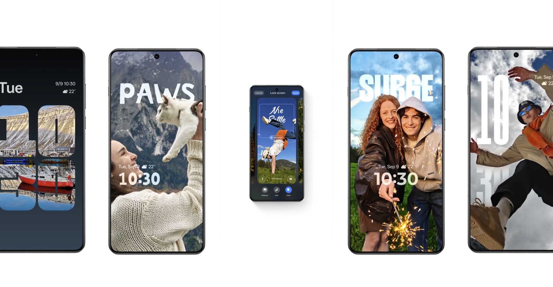Die Fluid Cloud entwickelt sich zu einem interaktiven Hub mit Integration von Drittanbieter-Apps. Nutzer erhalten Echtzeitbenachrichtigungen und Live-Updates von Apps wie Spotify, Essenslieferdiensten und Sport-Apps. Der Sperrbildschirm bietet umfangreiche Personalisierungsoptionen mit verschiedenen Uhren-Designs und visuellen Effekten. Mithilfe von Machine Learning werden Bildschirmelemente geschickt hinter wichtigen Teilen des Hintergrundbilds platziert, um einen dreidimensionalen Effekt zu erzeugen.