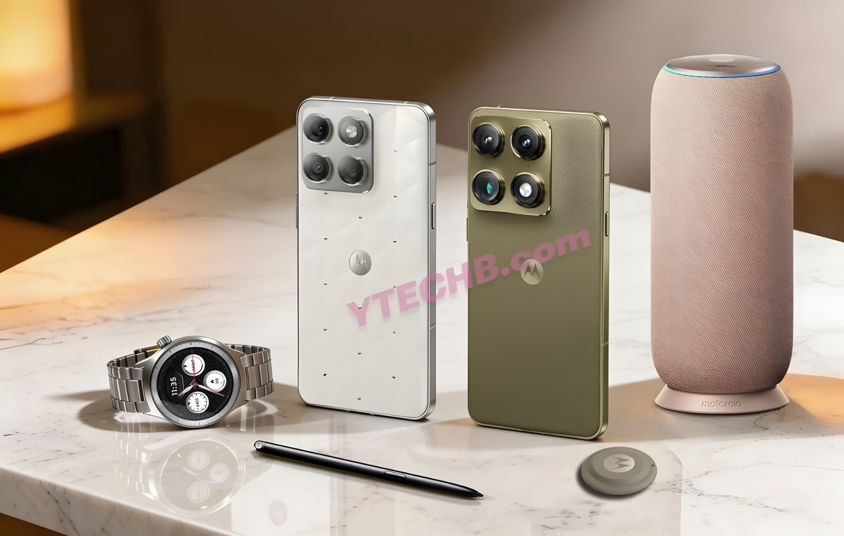 Das Promo-Bild zeigt neben dem Signature auch weitere Motorola-Produkte, darunter eine Smartwatch, ein Tracking-Gerät (möglicherweise der Moto Tag 2), einen Lautsprecher und eine spezielle Swarovski Crystal Edition. Dies deutet darauf hin, dass Motorola bei der Präsentation am 7. Januar in Indien sein gesamtes Ökosystem in den Vordergrund stellen möchte.