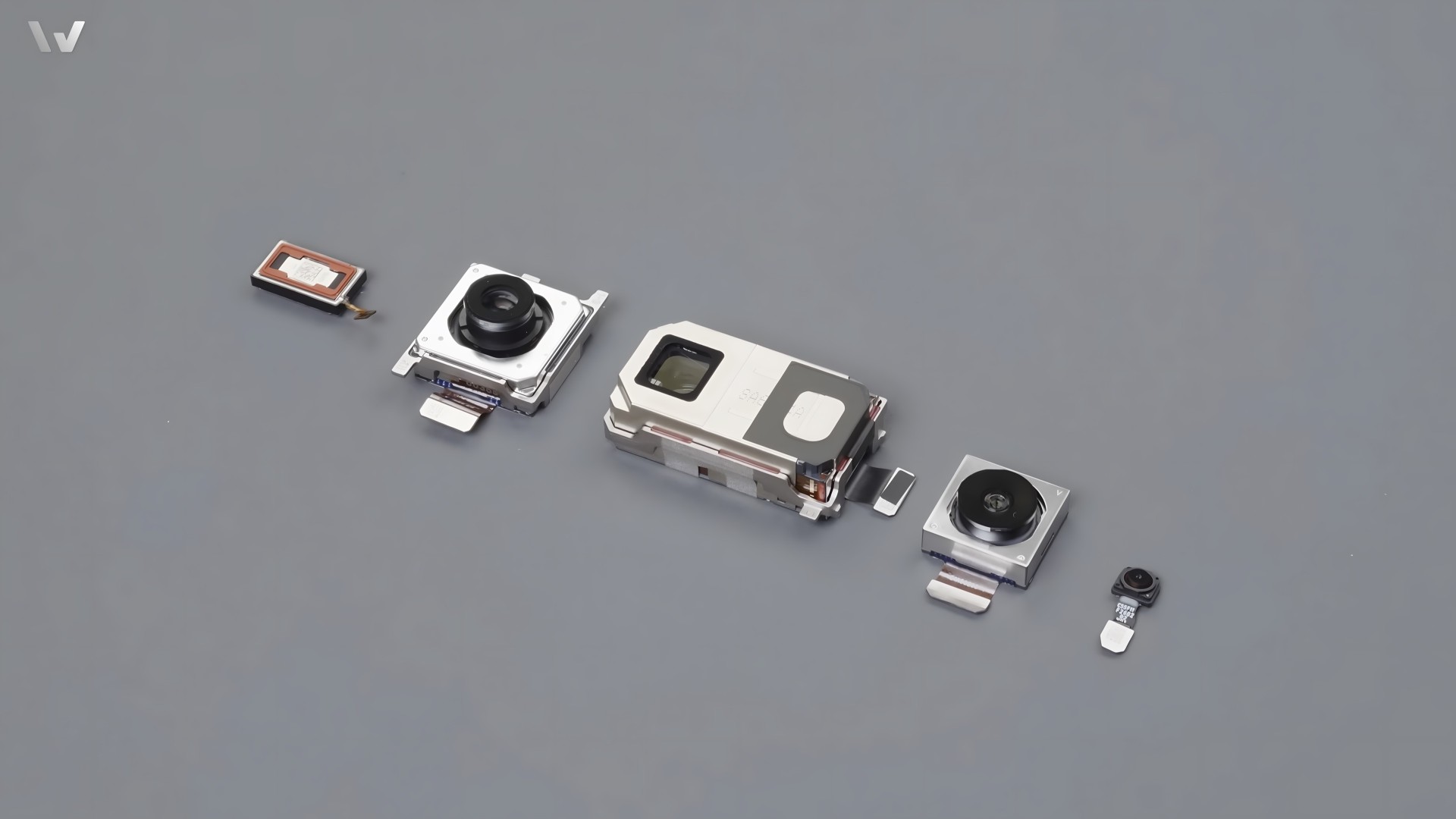 Bei der Kameraausstattung bestätigt der Teardown den hohen Materialaufwand. Neben dem Sony LYT901 mit 200MP Auflösung für die Hauptkamera ist das Periskop Teleobjektiv mit dem Samsung ISOCELL HP0 Sensor ausgestattet. Die Analyse zeigt eine aufwendige Prismenkonstruktion und einen verstärkten Gimbal OIS Mechanismus. Ein technisches Detail ist der neue multispektrale Farbsensor von Vivo, der über 12 Kanäle verfügt und direkt an der Kameraeinheit positioniert ist, um die Farbtreue der Zeiss Optiken zu unterstützen.