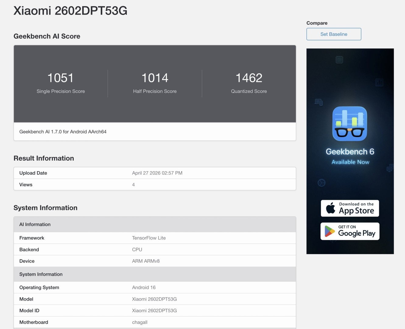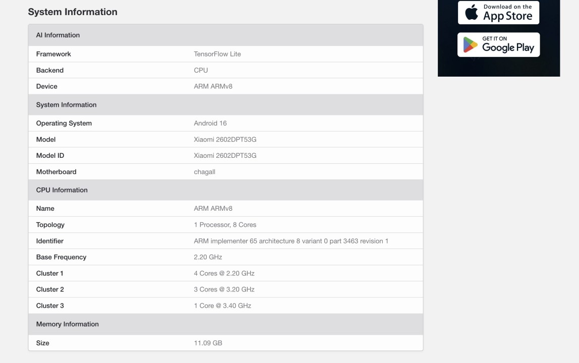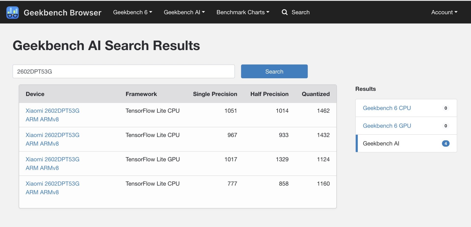 Kurz nachdem in China das Redmi K90 Max offiziell vorgestellt wurde, richten sich die Blicke der internationalen Fachwelt nun auf die kommende Xiaomi 17T Serie. Während das Redmi Modell als Basis für ein potenzielles Xiaomi 17T Pro gilt, gibt es nun handfeste Informationen zum regulären Xiaomi 17T. In der Datenbank des Geekbench KI Benchmarks ist ein neues Gerät mit der Modellnummer "2602DPT53G" gelistet worden. Diese Kennung ist bereits aus früheren Zertifizierungen von Regulierungsbehörden bekannt und wird in der Leak- bzw. Gerüchteküche dem globalen Xiaomi 17T zugeordnet.