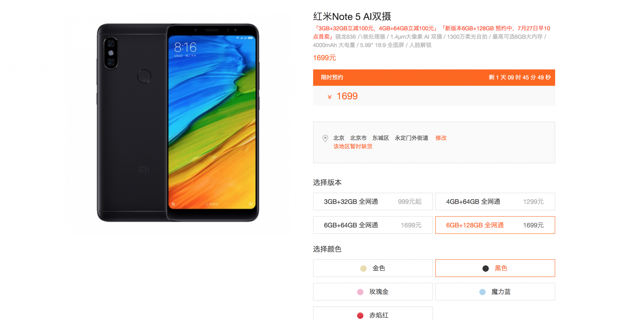 Wer sich bisher daran gestört hat, dass es das Redmi Note 5 nicht mit 128GB gibt, der verliert nun auch dieses Argument. Xiaomi bietet das Redmi Note 5 in China jetzt auch mit 6GB RAM und 128GB internem Speicher an. Das neue Modell wird seit kurzem auf der offiziellen Xiaomi Webseite gelistet und befindet sich aktuell im Pre-Sale. Zum Start bietet Xiaomi das Smartphone zum gleichen Preis wie das 64GB Modell an: 1.699 Yuan bzw. umgerechnet 214€. Das neue Modell ist in den Farben Schwarz, Blau, Gold, Rosa und Rot verfügbar. Zum endgültigen Preis nach dem Ende des Vorverkaufs am 27. Juli sind noch keine Informationen verfügbar.