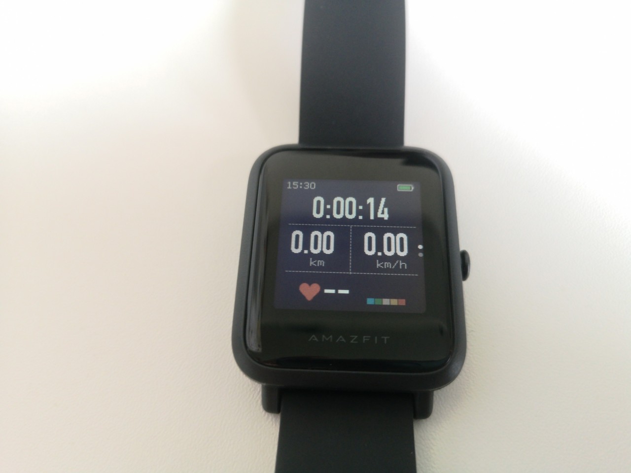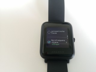 Beim kurzen Druck auf den physischen Button an der Seite der Uhr aktiviert man zunächst die Hintergrundbeleuchtung. Drückt man nun nochmals kurz auf den Button, öffnet sich das Hauptmenü der Smartwatch. Hier lässt sich der Status der Uhr ablesen, die Herzfrequenzmessung starten, die Trainingsvariante auswählen/starten, das Wetter anzeigen, den Wecker stellen, den Timer aufrufen/aktivieren, den Kompass aktivieren, den Mediaplayer öffnen oder in die Einstellungen der Uhr reingehen. Beim letztgenannten kann dann das Ziffernblatt ausgewählt werden (ohne App) oder eingestellt werden, was bei langem Druck auf das Display ausgeführt werden soll. Bei langem Druck auf den physischen Button startet das zuvor ausgewählte Sportprogramm. Man muss das GPS-Tracking per Knopfdruck akzeptieren und wartet dann ca. 3 Sekunden auf den Start zur Aufnahme der gewünschten Aktivität. Unterbrechen kann man diese dann durch erneut langes drücken des Buttons. Die Amazfit BIP S pausiert das Tracking. An dieser Stelle ist dann auch ein Abbruch mit oder ohne Speicherung der Aufzeichnung möglich.