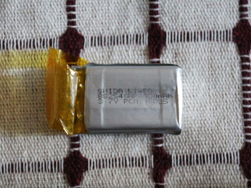 Laut Gearbest soll ein 850mAh Akku mitgeliefert sein. Davon steht allerdings nichts in der Anleitung und andere Shops geben erst gar keine Angaben dazu. Nach dem Abziehen der Ummantelung des Akkus sehen wir gerade noch die aufgedruckten 350mAh, was angesichts der Laufzeit realistischer ist. Es wird sich bei Gearbest sicher nur um einen Schreibfehler handeln.