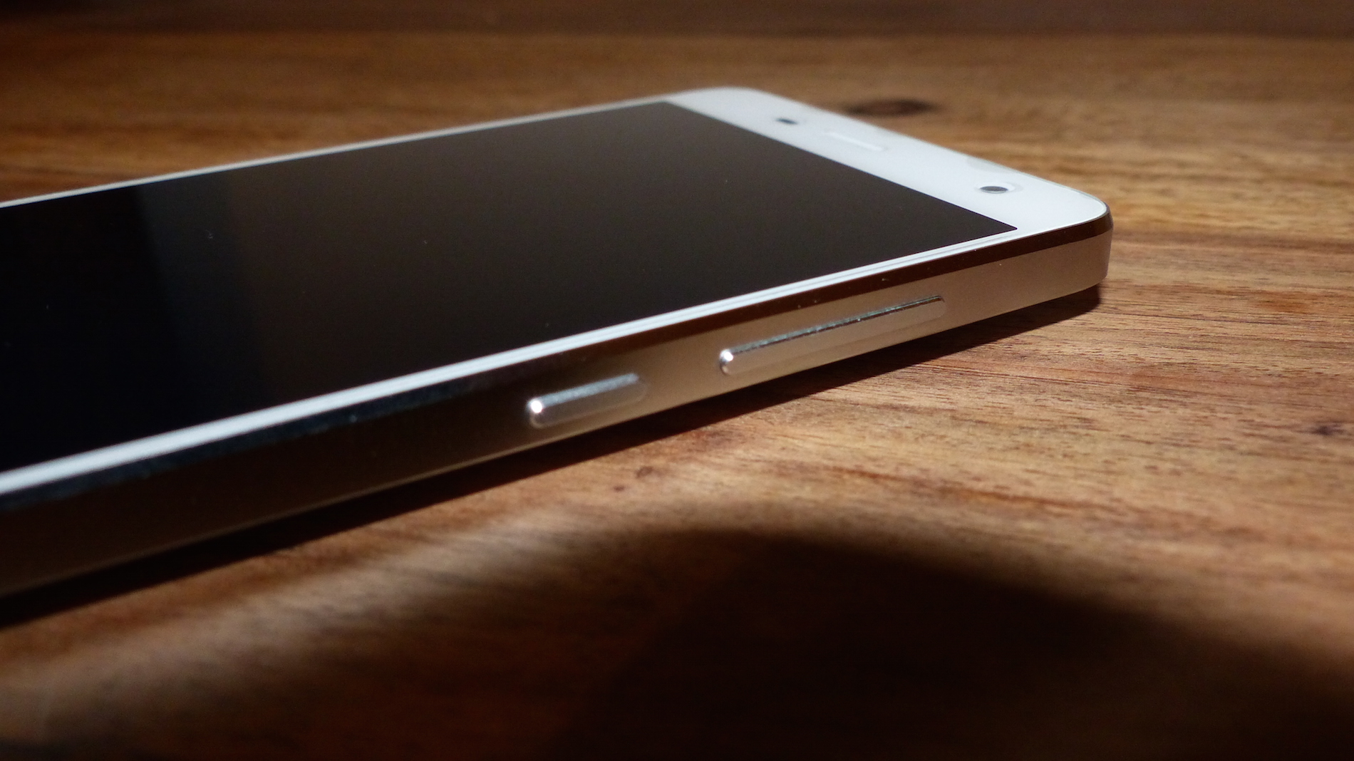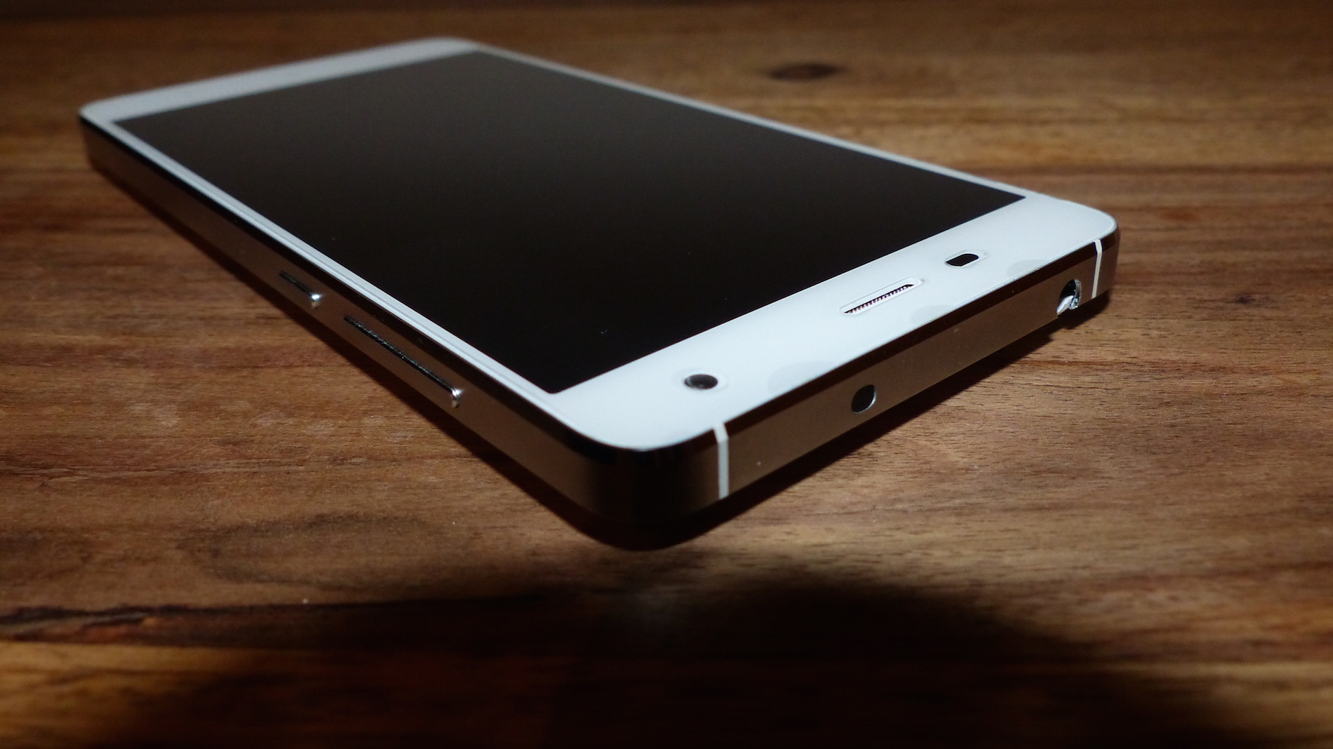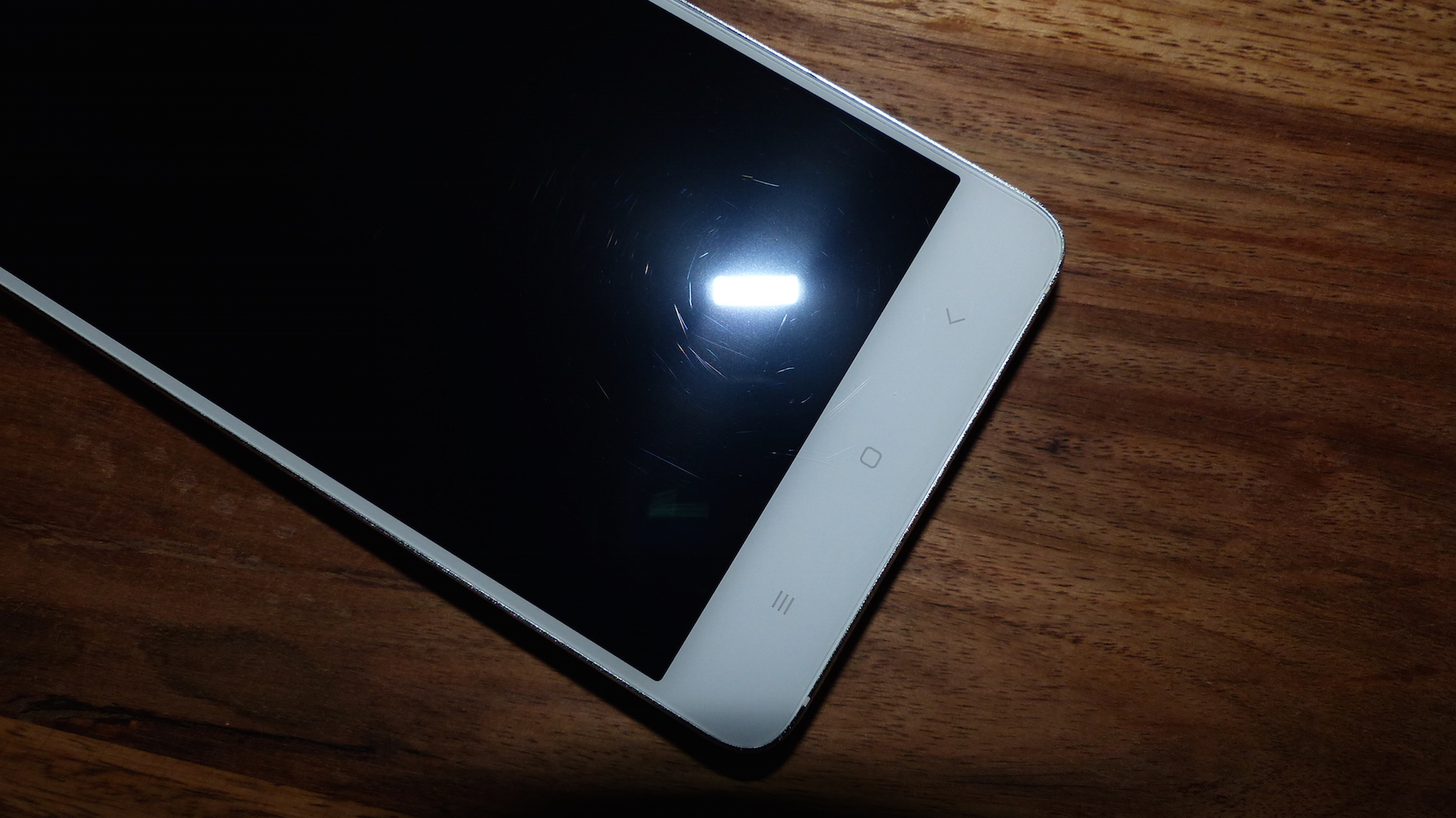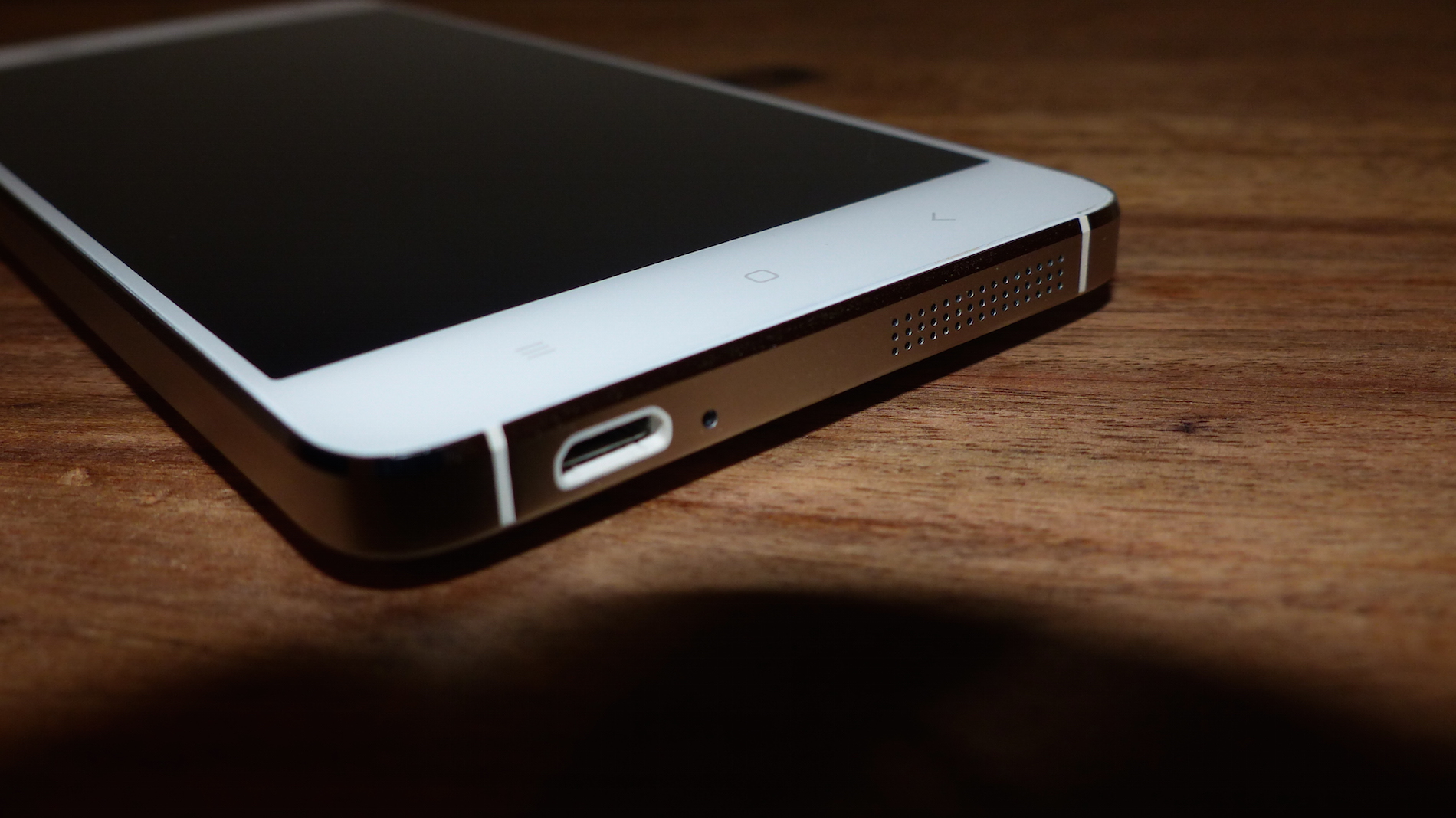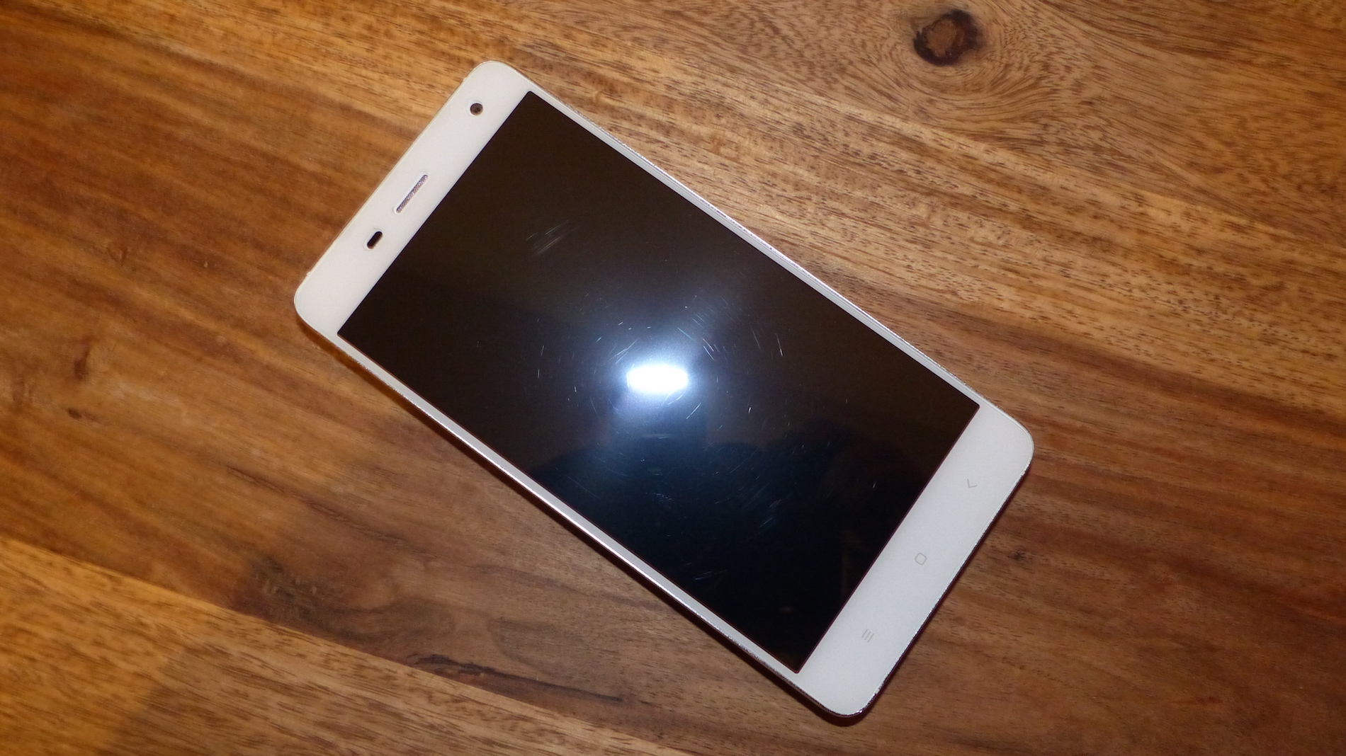 Arg viel näher muss ich auf das Design des Smartphones wohl nicht eingehen, denn jeder kennt das Xiaomi Mi4. So gehe ich hier nur die Unterschiede zum Original an. Die Hauptunterschiede auf der Front sind im Bereich der Touch-Buttons auszumachen. Hier gibt es nämlich keine Status LED unter dem Home Button, und die Beleuchtung der Touch-Buttons fällt etwas, nun ja, „billig“ aus. Die Ausleuchtung ist einfach nicht sauber. Meckern auf hohem Niveau, aber durchaus erwähnenswert wie ich finde. Am Rahmen fällt weiterhin auf, dass die Unterbrechungen im Metallrahmen, welche zur Verbesserung der Empfangsleistung mit Plastik ausgefüllt sind, spürbar sind. Das war beim Original nicht der Fall, zumindest soweit ich mich noch daran erinnern kann.