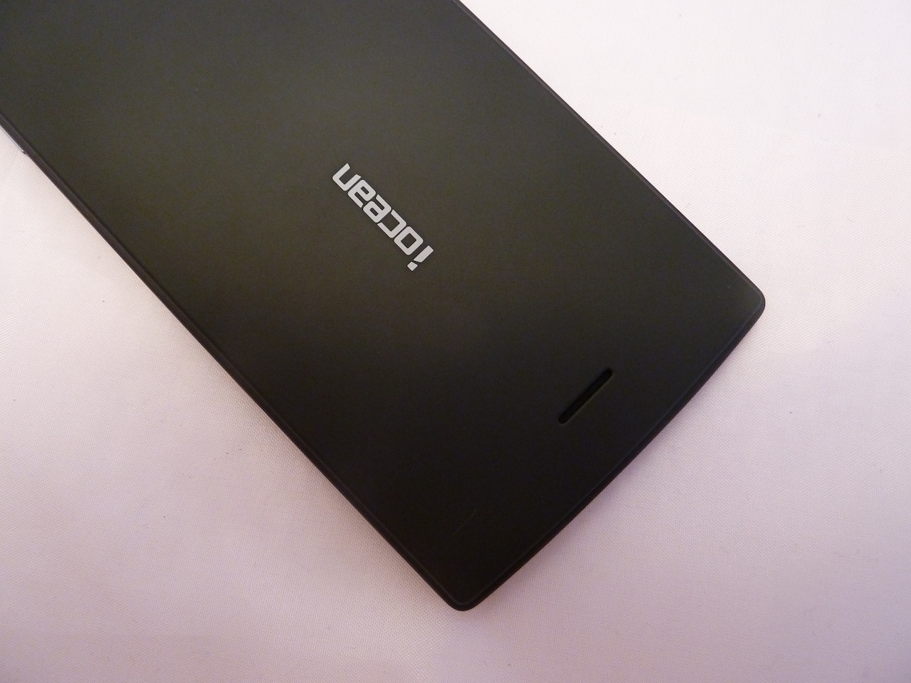 Die Anordnung der Tasten und Kameras unterscheidet sich nicht groß von anderen Geräten. Auf der Front befinden sich Softbuttons für die Funktionen "Menü", "Home" sowie "Zurück". Diese sind beim iOcean x7 leider nicht beleuchtet. Auf der Oberseite befinden sich der Lautsprecher für Telefonate sowie die Front Kamera. Auf der linken Seite befindet sich ein Wippschalter zum Regeln der Lautstärke, auf der rechten Seite der Ein / Aus Schalter. Unten befindet sich das Mikrofon sowie ein Mikro USB Anschluss. Auf der Oberseite befindet sich ein Kopfhöreranschluss. Auf der Rückseite befinden sich die Kamera mit LED Blitz und der Schlitz für den Lautsprecher. Zudem ist hier noch das iOcean Logo aufgedruckt.