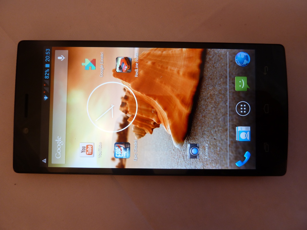 Das Display des iOcean x7 macht einen recht guten Eindruck. Es ist nicht so extrem Hell wie bei den Star Smartphones, aber dennoch hell genug. Überraschenderweise kann man das Display sogar besser unter Sonnenlicht ablesen als bei anderen Geräten die wir bisher getestet haben. Beimn verbauten Panel handelt es sich um ein IPS Retina Display mit 5 Zoll. Die Auflösung beträgt 440ppi bei 1920x1080 Pixeln.