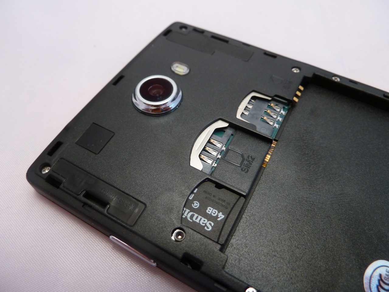 Die Rückabdeckung lässt sich sehr einfach entfernen, sitzt aber dennoch fest genug um nicht beim Transport abzufallen. Im Inneren des iOcean x7 befinden sich ein Slot für eine Micro SD Karte, ein Slot für normale SIM Karten und ein Slot für Mikro SIM Karten. Auch wenn die beiden Slots unterschiedliche SIM Formate aufnehmen, so können sie dennoch gleichzeitig verwendet werden. Die Dual SIM Funktionalität ist also nicht eingeschränkt.