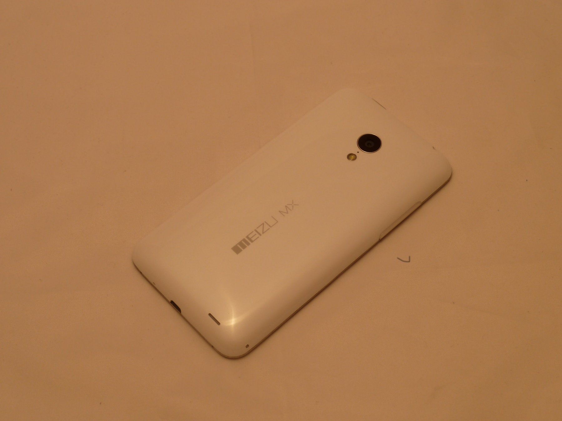 Von der Verarbeitung her ist am Meizu MX3 absolut nichts auszusetzen. Meizu setzt hier auf ein schlichtes aber hochwertig wirkendes Design mit einer schwarzen Front aus Gorilla Glass. Hier finden wir neben dem Telefonhörer eine Front Kamera, natürlich das Display mit sehr dünnen Rändern, und auf der Unterseite den für Meizu typischen runden Home Button. Sensoren sind nicht sichtbar, auf Soft Buttons wurde, mit Außnahme des Home Buttons, komplett verzichtet. Die Rückseite besteht aus einer Abdeckung aus weißem Polycarbonat in Hochglanzoptik. Hier befinden sich dann auch die Kamera und der LED Blitz, welche mit einem sehr dünnen Rahmen aus Echtmetall eingefasst sind. Die Linse ist durch eine Abdeckung aus Saphirglas geschützt. Zwischen Kamera und LED Blitz wurde eines der drei Mikrofone platziert. Auf der unteren Seite ist dann das Meizu MX Logo in einem grauen Farbton aufgedruckt, in der rechten unteren Ecke finden wir den Lautsprecher. Dieser befindet sich am Anfang der Wölbung zum Rand hin, sodass er beim Hinlegen des Geräts nicht verdeckt wird.