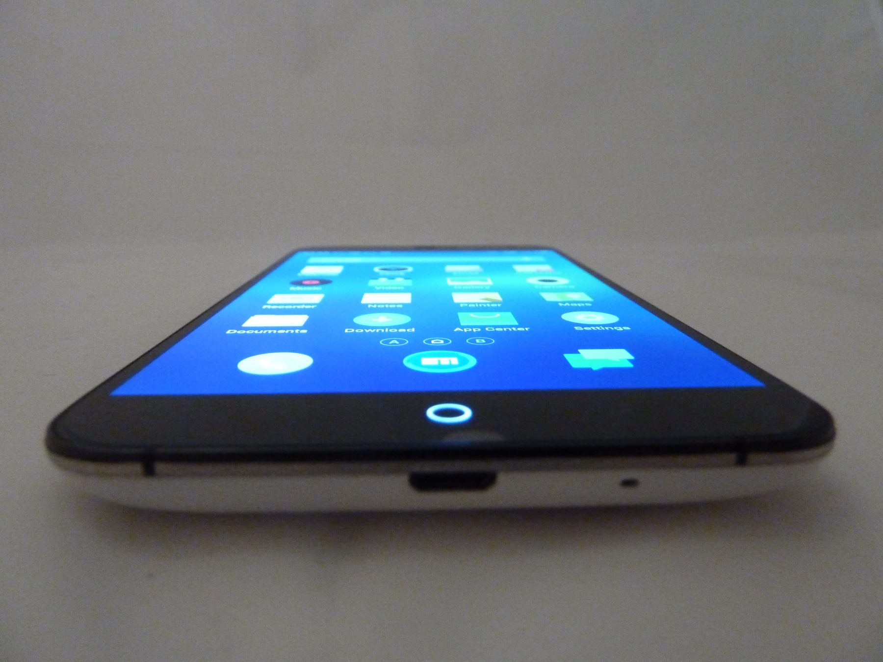 Der Bildschirm des Meizu MX3 ist eine wahre Freude für die Augen. Das Gerät hat mit dem 5,1" Display im 15:9 Format eine perfekte Größe. Nein, es handelt sich hier nicht um einen Schreibfehler, es ist tatsächlich 15:9 gemeint. Die ist gerade beim Surfen im Internet ein großer Vorteil, da man gerade im Landscape-Modus in der Höhe wesentlich mehr Platz hat, als bei 16:9. Auch die Auflösung weicht aufgrund des Formats von den üblichen bekannten Auflösungen ab. Diese beträgt hier 1800 x 1080 Pixel bei 400ppi. Pixel sind bei genauerem Hinsehen nicht zu erkennen, was ein extrem klares und detailreiches Bild zur Folge hat. Beim verbauten Panel handelt es sich übrigens um ein Panel von Sharp. Wie zu erwarten, gibt das Panel Farben hervorragend wieder. Sie sind weder zu knallig, noch zu schwach, also genau richtig, um eine natürliche Darstellung von Inhalten zu erreichen. Die Helligkeit überzeugte im Test ebenfalls. Sie ließ sich hervorragend regeln, und auch die automatische Regelung funktionierte ohne die von manchen Geräten bekannte Hysterese. Lobenswert ist auch die Verteilung der Helligkeit. Auch bei dunklen Bildern waren keine Lightspots zu erkennen. Trotz der hohen Helligkeit verfügt das Display über hervorragende Schwarzwerte. Auch aus extremen Blickwinkeln wird der Inhalt scharf und farbgetreu dargestellt, lediglich die Helligkeit nimmt ein wenig ab. Hier ist die IPS und OGS Direct Lamination Technologie von Vorteil. Der Touchscreen arbeitet ebenso einwandfrei wie auch das Display. Eingaben werden präzise und ohne Verzögerungen erkannt. Der Finger gleitet mühelos über die Gorilla Glass-Fläche.
