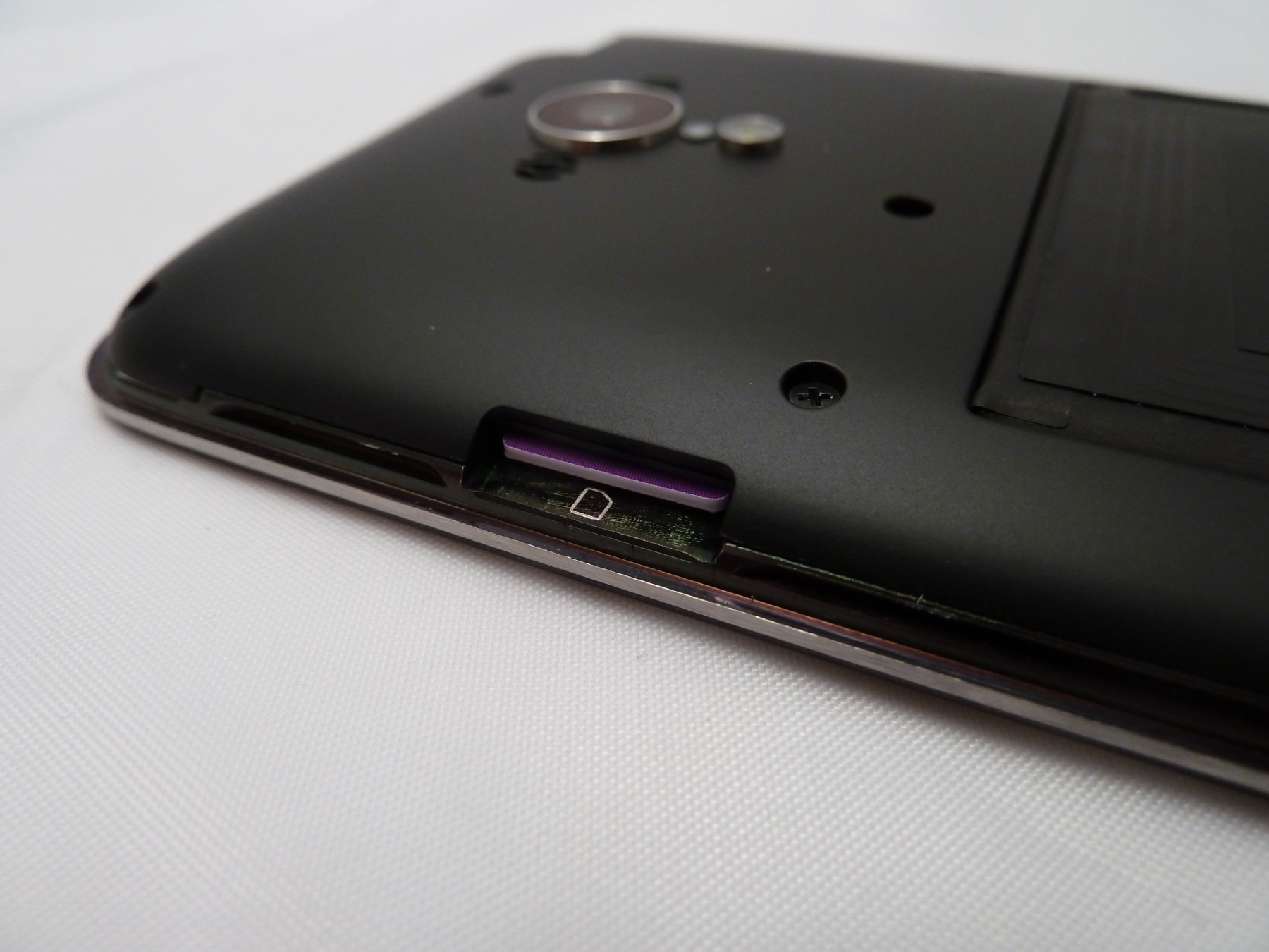 Der einzige Wermutstropfen am Design ist der "Mechanismus" zum Öffnen der Rückabdeckung des Smartphones. Hier wurde auf die übliche Einbuchtung für den Fingernagel verzichtet. Stattdessen muss man mit dem mitgelieferten Werkzeug, einen kleinen Metallstift, auf der rechten Seite der Rückseite des Smartphones nach unten drücken. Dann zieht man die Abdeckung mit dem Werkzeug leicht nach oben, woraufhin man mit dem Werkzeug einmal an der Seite des Geräts entlangfährt. Dadurch entriegelt sich die Abdeckung, und man kann sie abnehmen. In der Theorie klingt das einfach, ist aber in der Realität mit einigen Tücken verbunden. Das erste Problem ist, dass die Abdeckung gleich wieder zuschnappt, sobald man das Werkzeug aus dem Loch zieht. Man muss es also zunächst einmal schaffen, einen Fingernagel zur Blockierung der Abdeckung in den entstandenen Schlitz zu stecken, bevor man dann das Werkzeug absetzt. Doch auch dann lässt sich die Abdeckung nur mit viel Widerstand entfernen. Ein weiters Problem: Bricht der Plastikstift des Werkzeugs irgendwann einmal ab, so hat man kaum eine Alternative, als eine Nadel zu verwenden. Ein Zahnstocher bricht ab. Dies führt allerdings im Laufe der Zeit zu unansehnlichen Schäden am Gerät. Hier hätte Meizu sich also besser eine andere Lösung einfallen lassen. Unter der Abdeckung befindet sich im übrigen nicht viel. Wir finden hier nur den Akku mit der NFC Antenne und einen Micro SIM Slot. Auf einen Steckplatz für Micro SD Karten hat Meizu verzichtet.