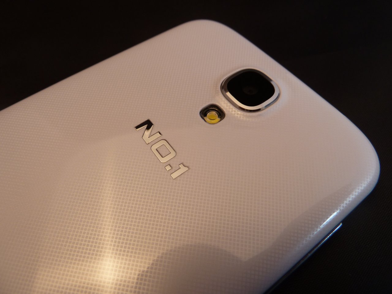 Auf der Rükseite des No.1 S6 befindet sich die Rear Kamera, welche von einem Rahmen im Metall-Look umgeben ist. Darunter ist der LED Blitz angebracht. Es befindet sich hier ebenfalls das No.1 Logo in metallisch lackierten Lettern. Im unteren Bereich ist eine Öffnung für den Lautsprecher angebracht.