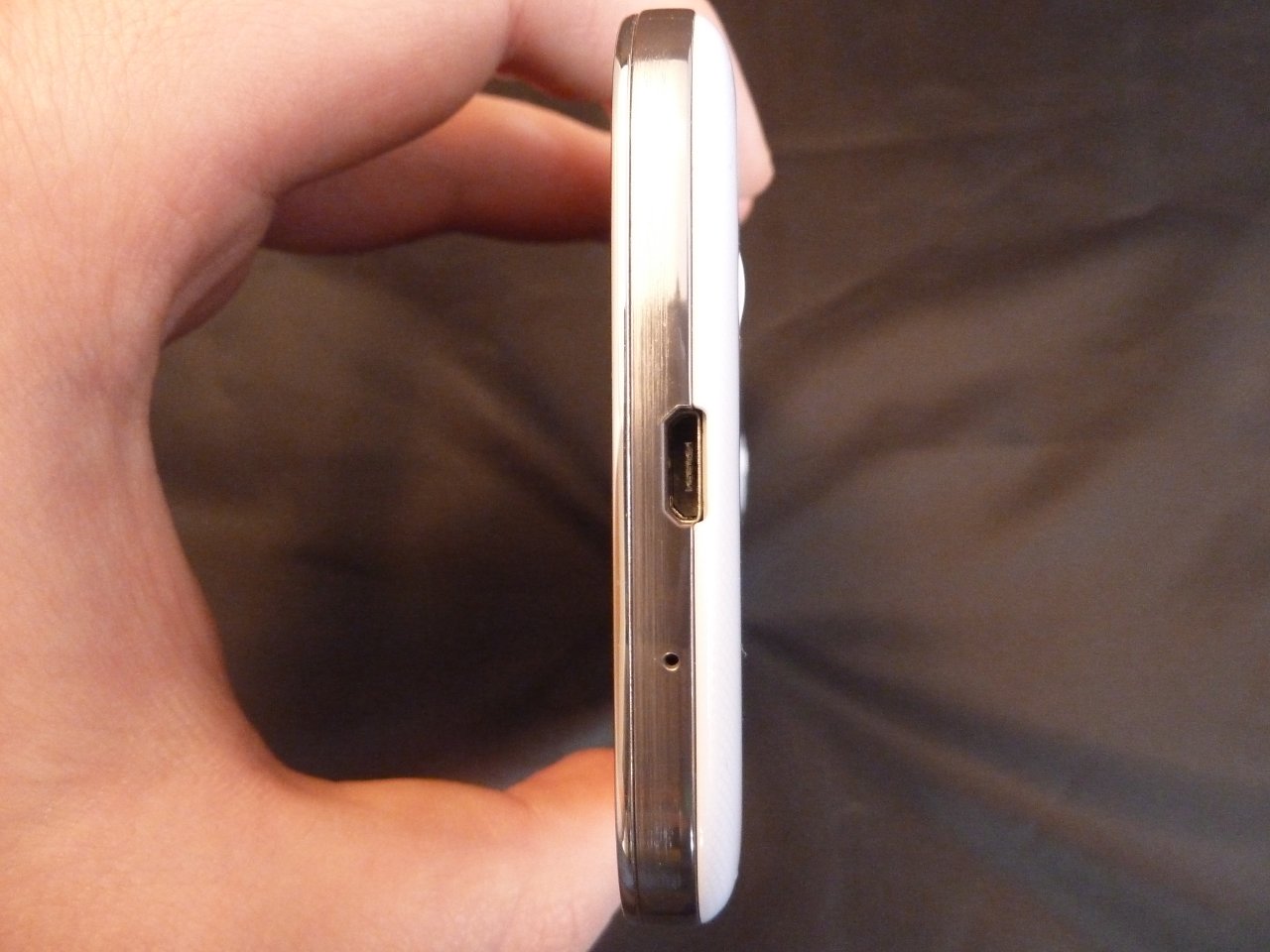 Auf der oberen Seite des Geräts befindet sich ein Anschluss für Kopfhörer und (vermutlich) der Helligkeitssensor. Auf der unteren Seite befinden sich das Mikrofon sowie der Micro USB Anschluss.