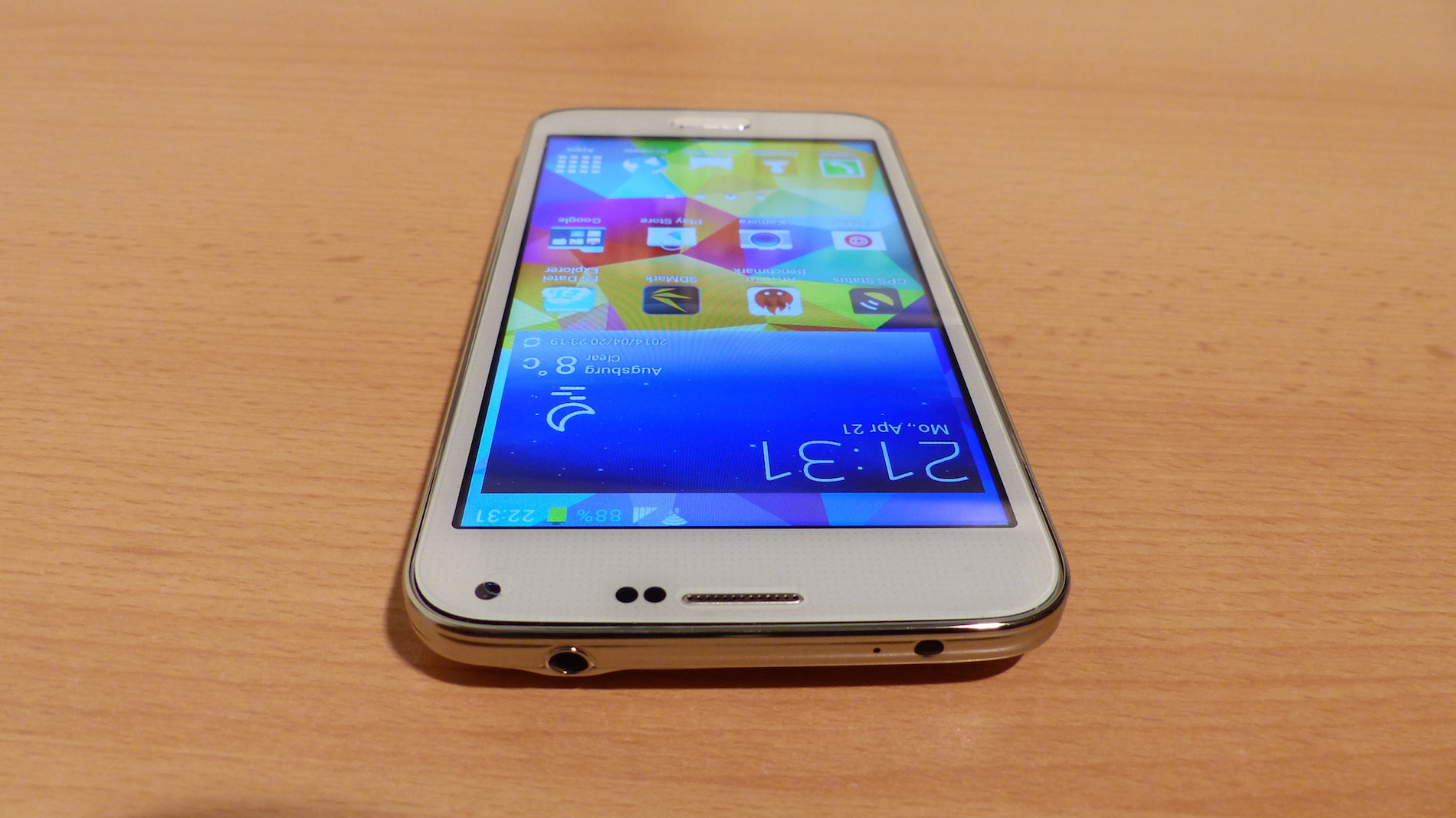 Der Klang des internen Lautsprechers ist wirklich sehr laut, übersteuert aber überraschenderweise auch bei maximaler Lautstärke fast nie. Basswiedergabe ist leider kaum vorhanden. Auch mangelt es wohl an Abschirmung, denn ab und an hört man Interferenzen vom Mobilfunk. Die Klangqualität über den Kopfhöreranschluss ist zwar klar, aber nicht übermäßig kraftvoll und laut.