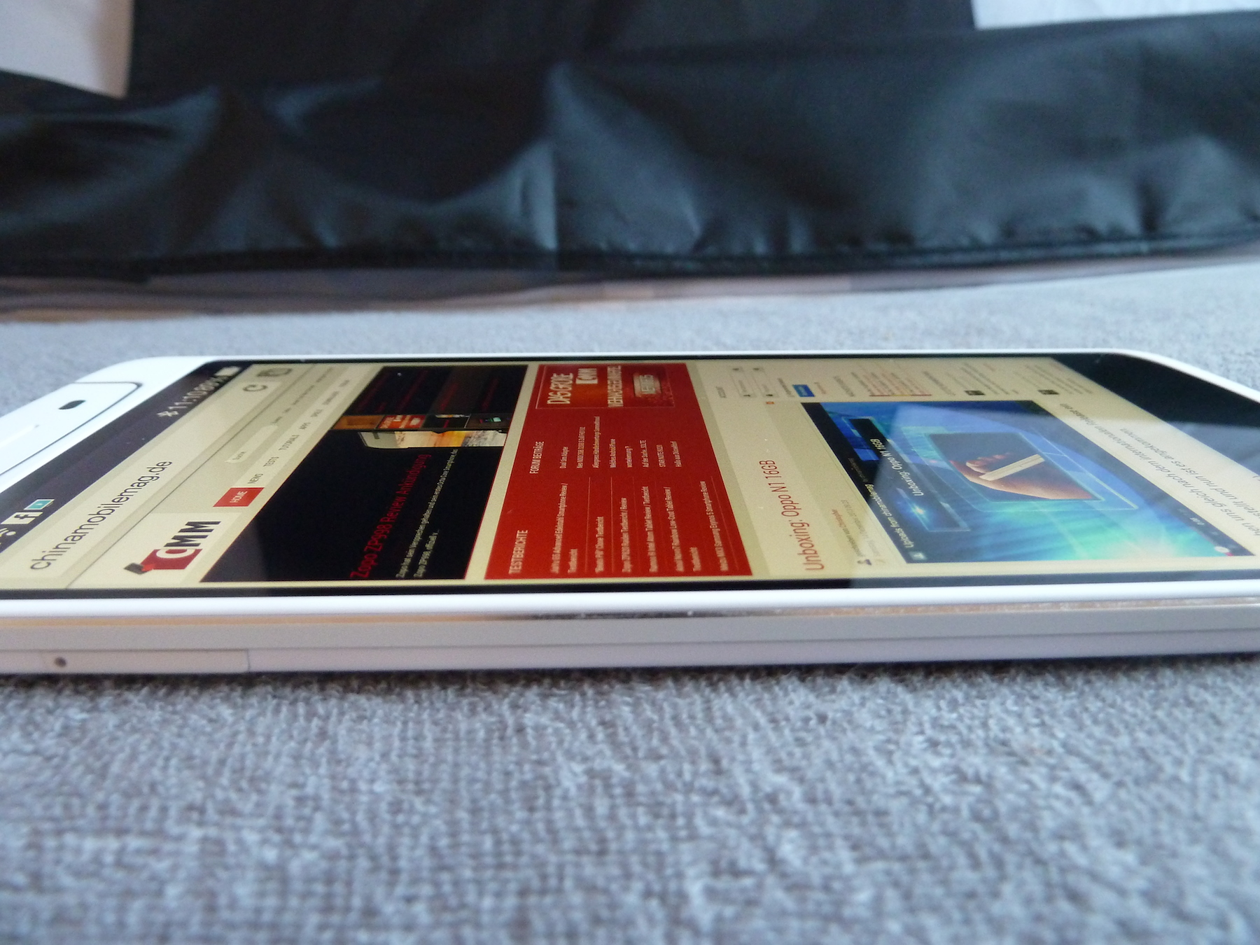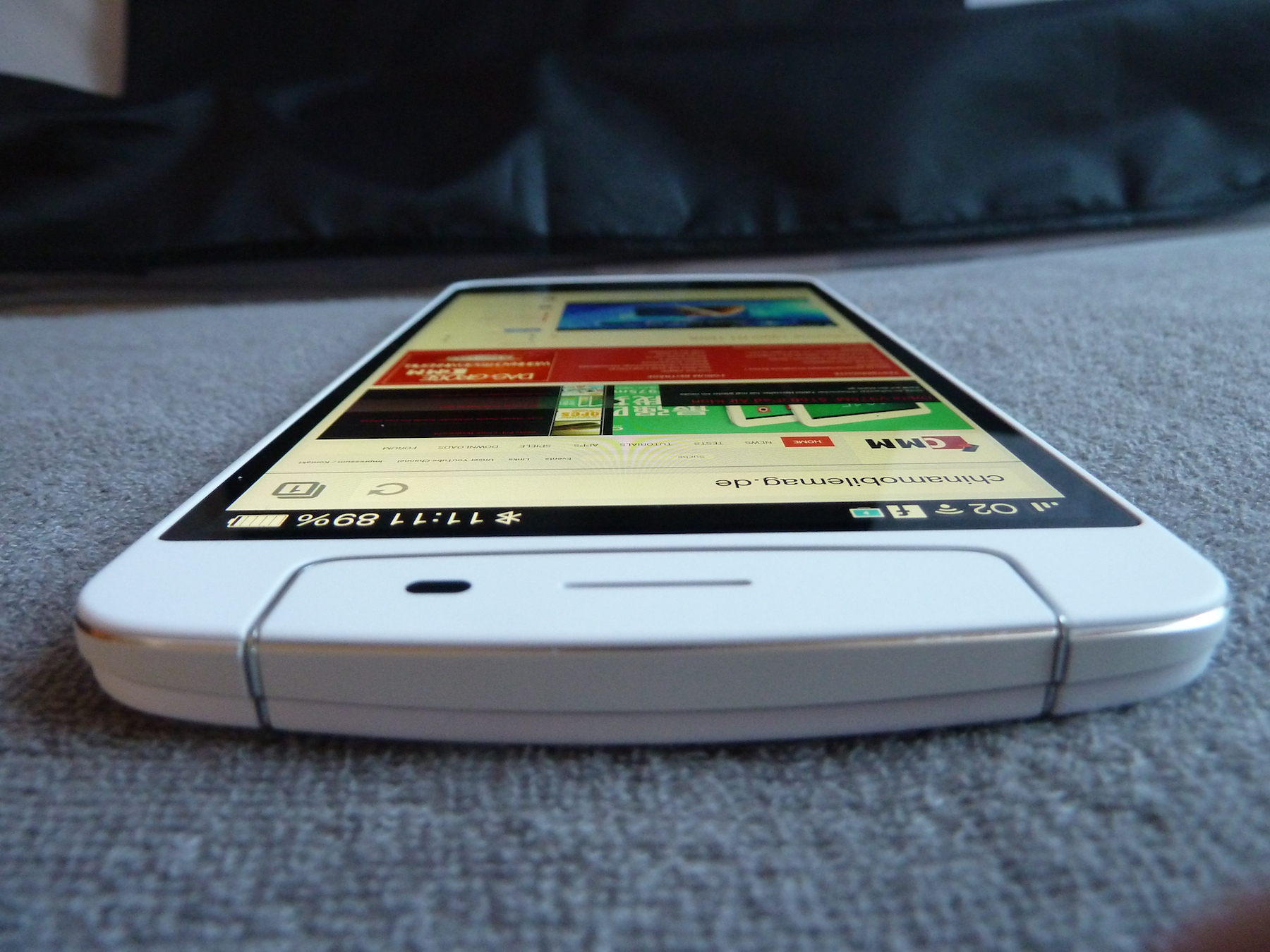 Da es sich um ein IPS Display handelt, ist auch die Betrachtung des Bildschirms aus extremen Blickwinkeln kein Problem. Hier nimmt zwar die Helligkeit des Bildes merklich ab, allerdings bleiben die Farben stabil und invertieren nicht. Dies wird durch die unten stehenden Bilder verdeutlicht.
