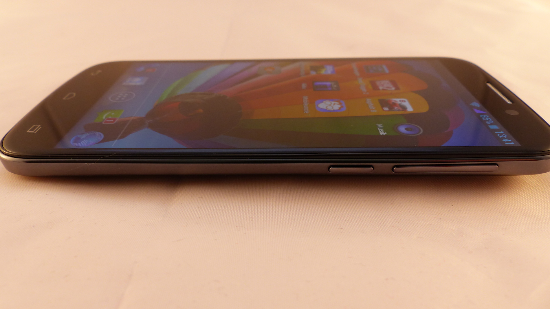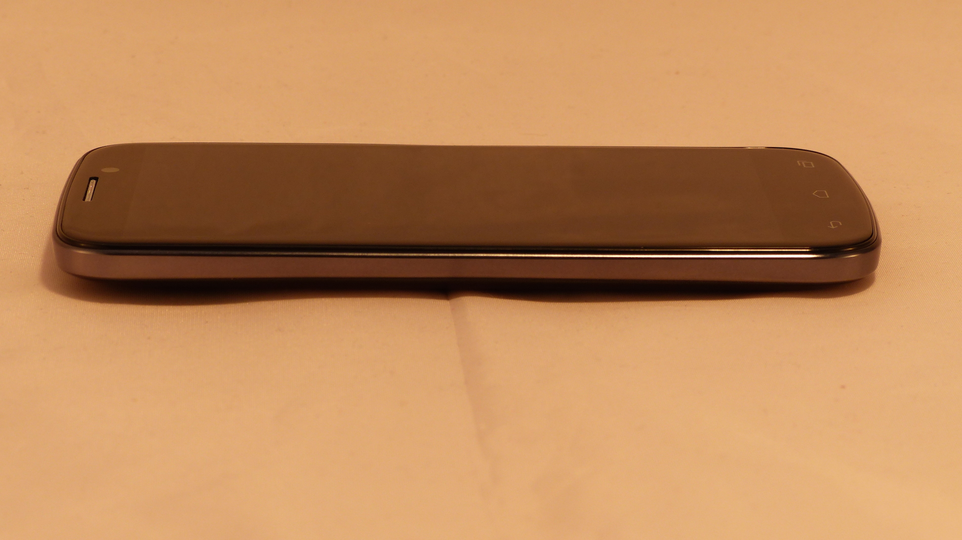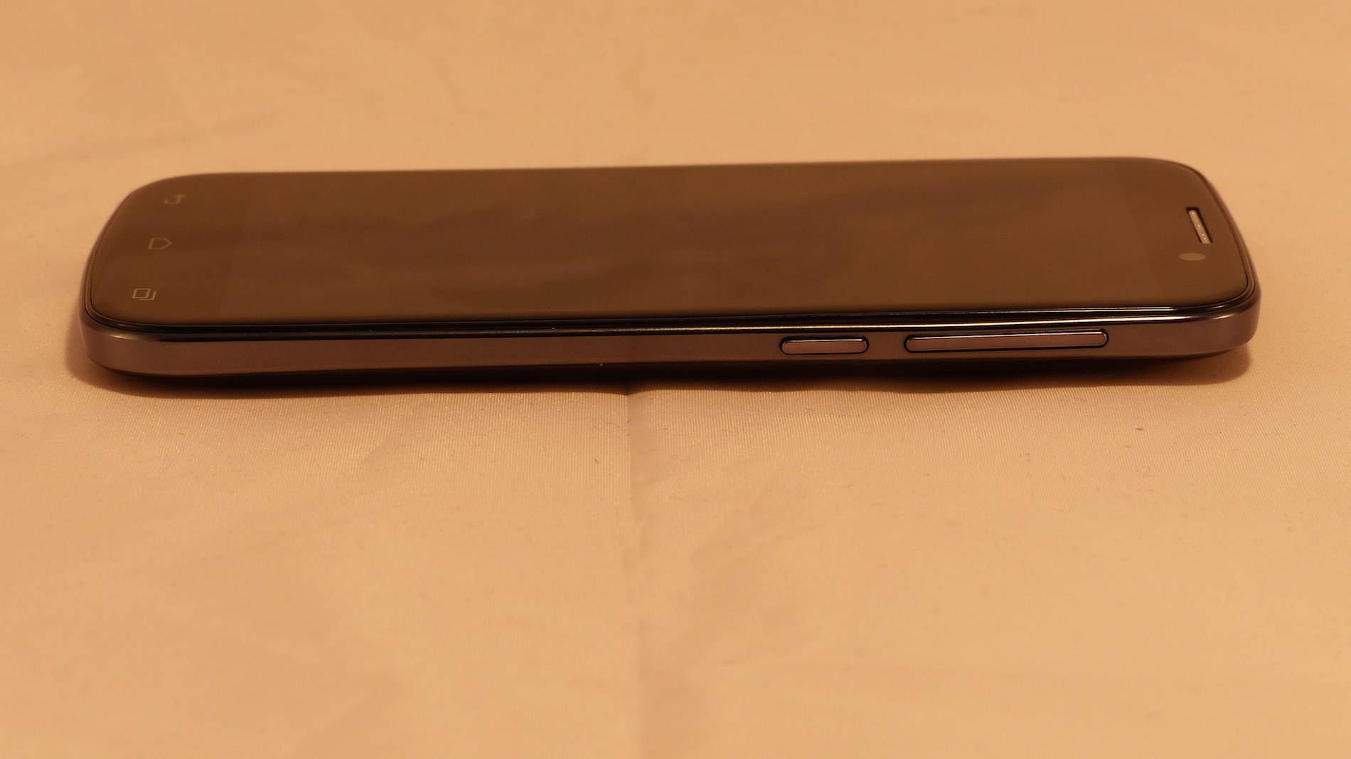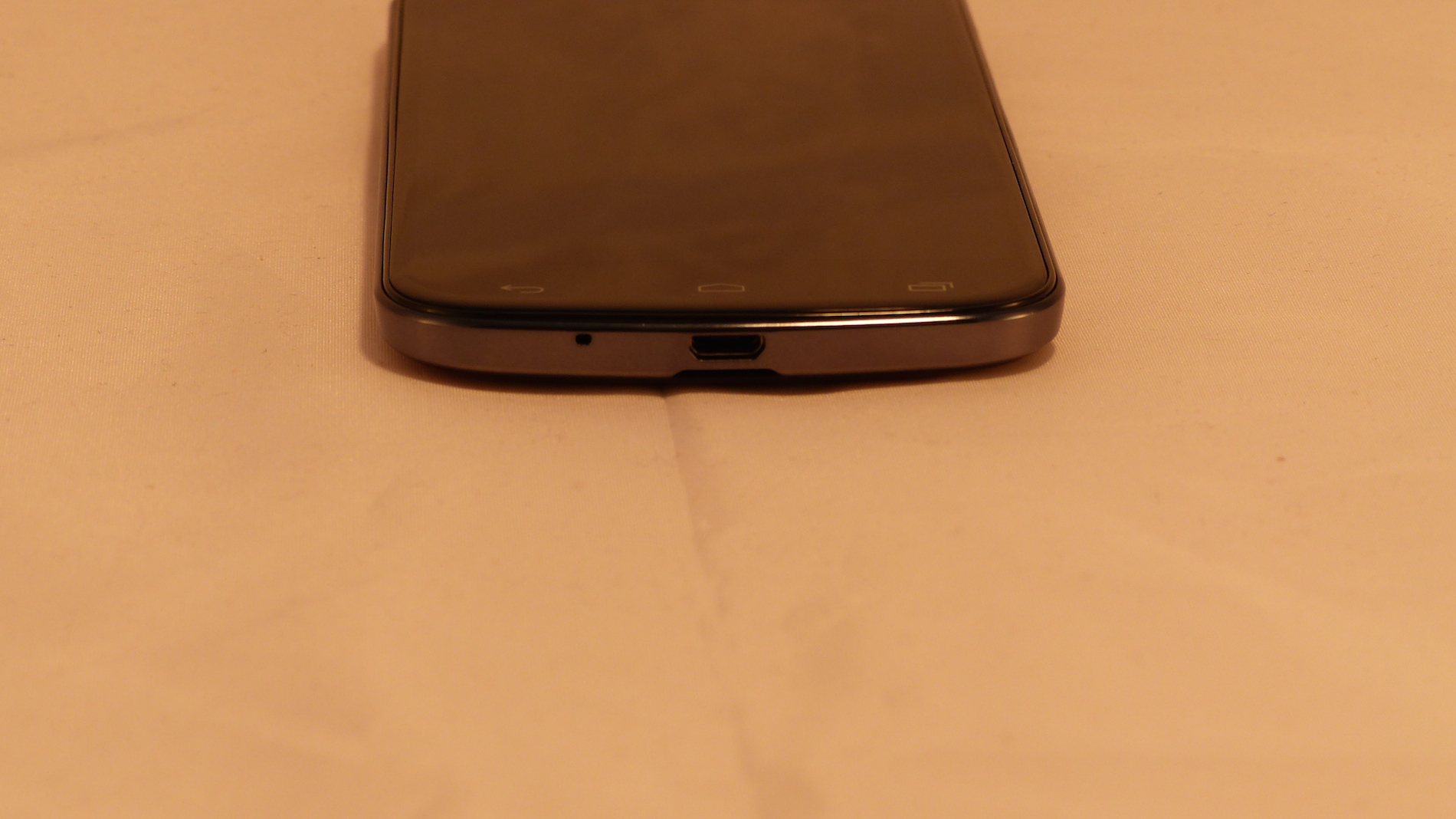 Die Seiten des Smartphones sind von einem Plastikrahmen in Metall-Optik umzogen. Hier finden wir überraschenderweise auf der linken Seite gar nichts. Auf der unteren Seite sind das Sprachmikrofon und der Micro USB Anschluss angebracht.