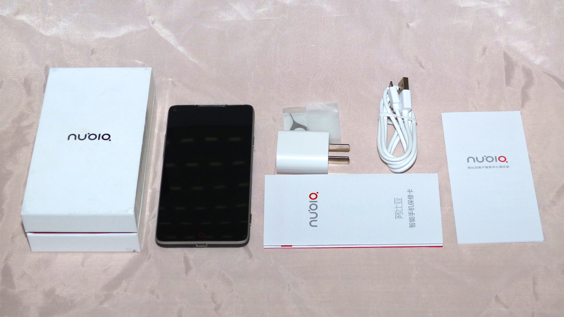 Der Inhalt ist genauso spartanisch wie das Design der Verpackung. Neben dem Smartphone findet der Kunde hier eine Garantiekarte, eine Anleitung (beides auf Chinesisch), ein USB Netzteil mit chinesischem Stecker, ein Werkzeug zum Öffnen der SIM Karte und ein Micro USB Kabel. Weder Kopfhörer noch Schutzhülle liegen bei, was angesichts des Preises etwas enttäuschend ist.
