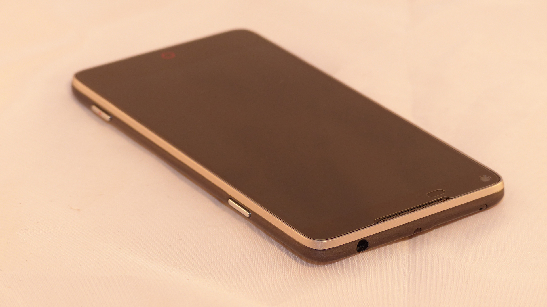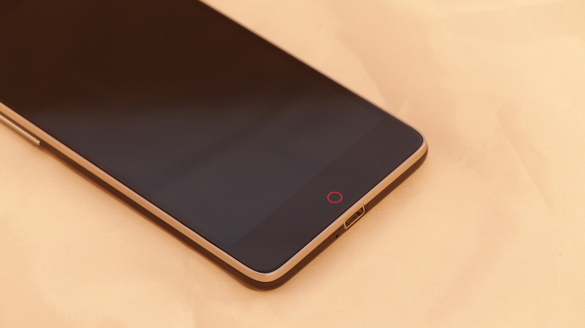 Designtechnisch erweist sich das ZTE Nubia Z5S als ein zweischneidiges Schwert. Doch vor der Bewertung zunächst mal alle Details zu Selbigem. Die Front ist hier ganz in Schwarz - kein Wunder, wir haben auch das schwarze Modell bekommen. Die obere Hälfte wir hier von einem recht breiten metallenen Telefonhörer dominiert. Links darunter befinden sich Front Kamera und eine Sensorleiste. Unter dem Bildschirm befindet sich ein roter Ring, welcher den Home Button symbolisiert. Unter diesem verbirgt sich eine LED, welche bei Benachrichtigungen oder beim laden pulsiert. Nebst diesem Button befinden sich noch zwei Soft Buttons für Menü und Zurück, welche aber nur als roter Punkt bei Berührung sichtbar werden, also ohne Icons auskommen.