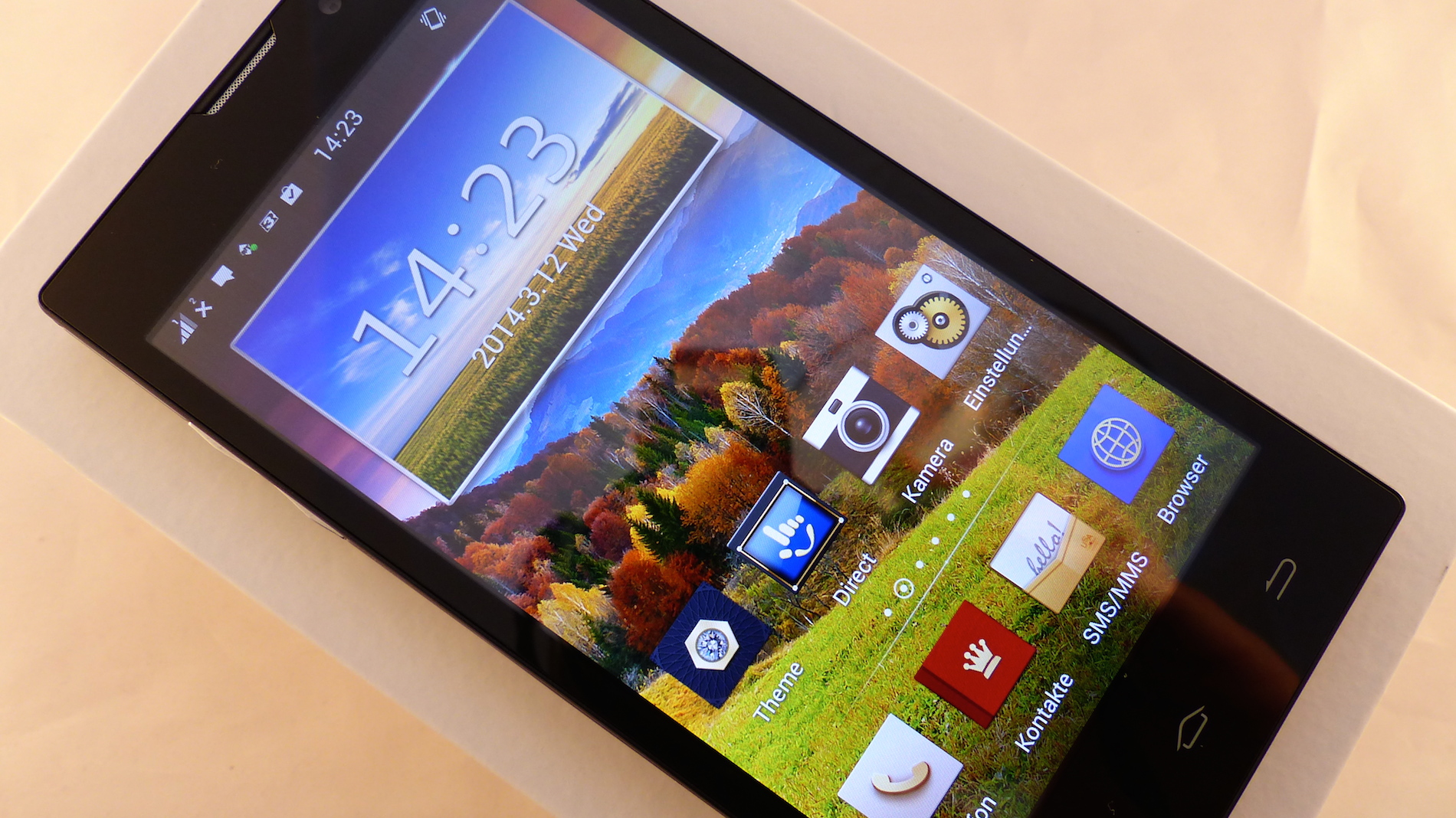 Das im Star HD5000 verbaute Display hat eine Größe von 5" und löst mit 1280 x 720 Pixeln auf. Trotz des geringen Preises des Smartphones hat das Display hier eine ordentliche Qualität und stellt alle Inhalte schön scharf dar. Auch die Farben kommen sehr gut herüber und sehen schön natürlich aus. Was uns im Test überrascht hat sind hier die einwandfreien Schwarzwerte, welche auf diesem Preisniveau selten sind. Die Helligkeit des Displays ist auch gut, so dass man auch draußen noch einigermaßen gut damit arbeiten kann. Die automatische Helligkeitsregelung stellt leider oft zu dunkel ein. Pixel sind natürlich aufgrund der etwas geringeren Pixeldichte sichtbar, aber erst wenn man sehr nahe herangeht, also ab etwa 10cm Abstand. Während der normalen Benutzung kann man sie nicht erkennen.