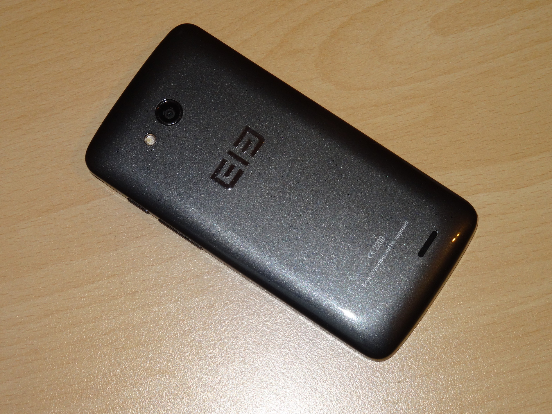 Auf der Rückseite prangt prominent platziert das Elephone-Logo in gewohnter Chrom-Optik. Oberhalb davon ist mittig die Kamera platziert und links davon der LED-Blitz. Am unteren Rand ist eine Öffnung für den Lautsprecher in das Gehäuse gefräst, die zum Schutz auf der Innenseite mit einer Membran bedeckt ist. Oberhalb der Öffnung ist noch der typische Elephone-Slogan „keep expecting and be surprised“ zu lesen. Darüber sind noch ein CE-Zeichen und eine Seriennummer aufgedruckt. Das Backcover insgesamt ist leider nicht ganz perfekt verarbeitet, sondern hat einige „Hubbel“ auf dem Kunststoff, die vermutlich von Verunreinigungen beim Lackieren stammen. Das sieht leider etwas unschön aus und wirkt dann doch eher billig.