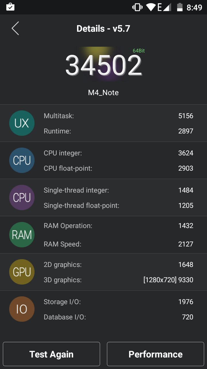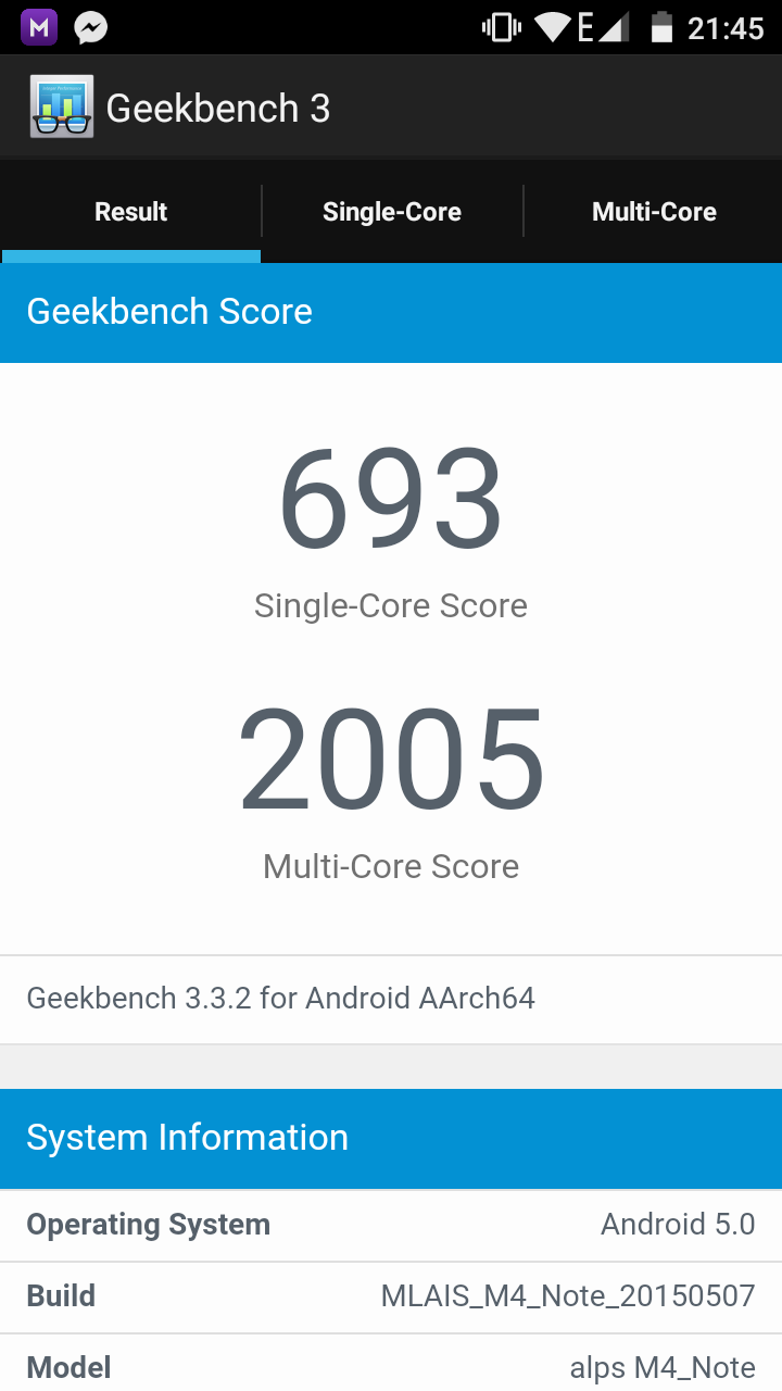 Bei diesem Punkt muss man zwischen Auslieferungs- und Nach-Update-Zustand unterscheiden. In den ersten Tagen funktionierte das M4 soweit absolut in Ordnung, sofern man aber Apps wie Whatsapp, Facebook und Messenger benutzen wollte schmierten diese komplett ab. Bei einigen anderen wie etwa Spotify bekam das Display immer mal wieder bunte Streifen im unteren Bereich. Zwar nichts wirklich schlimmes zumal das Ganze mit dem Druck auf den Standby/ Power-Knopf auszuschalten war, wirklich schön ist natürlich etwas anderes. Nach dem jüngsten Update für das M4 Note läuft bislang alles reibungslos und wirklich zufriedenstellend. Natürlich hat der verbaute MT6732 nicht die Performance wie ein 6752er, eine super solide und vor allem energiesparende Leistung hat er aber allemal. Hier machen sich aber auch die verbauten 2GB Arbeitsspeicher bemerkbar und auch dafür sollte man Mlais ausdrücklich loben.