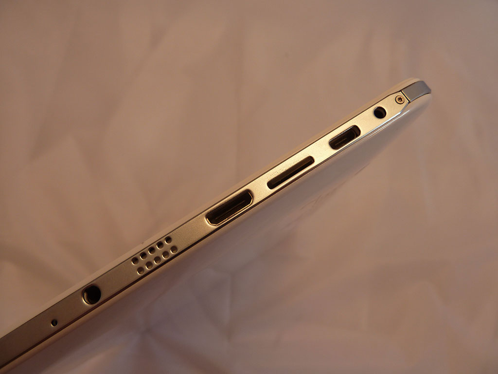 Das Cube U30GT2 ist mit 16 und 32 GB Speicher erhältlich. Uns lag eine Version mit 32 GB vor, von denen 25 GB zur freien Benutzung zur Verfügung standen. Der Speicher kann per Micro SD Karte jederzeit aufgerüstet werden, was jedoch in den meisten fälen bei so viel internem Speicher nicht notwending sein dürfte. An Anschlüssen wurde beim Cube U30GT2 nicht gespart. Neben dem Micro USB Port, welcher per OTG Adapter auch als vollwertiger USB Anschluss fungieren kann, befindet sich auf der linken Seite des Tablets noch ein Mini HDMI Anschluss, eine Kopfhörer Buchse, der Micro SD Karten Slot, sowie der Anschluss zum Aufladen des Tablets. Der Power Knopf und der Lautstärleregler befinden sich auf der oberen linken Seite. Auf den anderen Seiten befindet sich nichts, außer eine Öffnung für den Lautsprecher auf der rechten Seite.