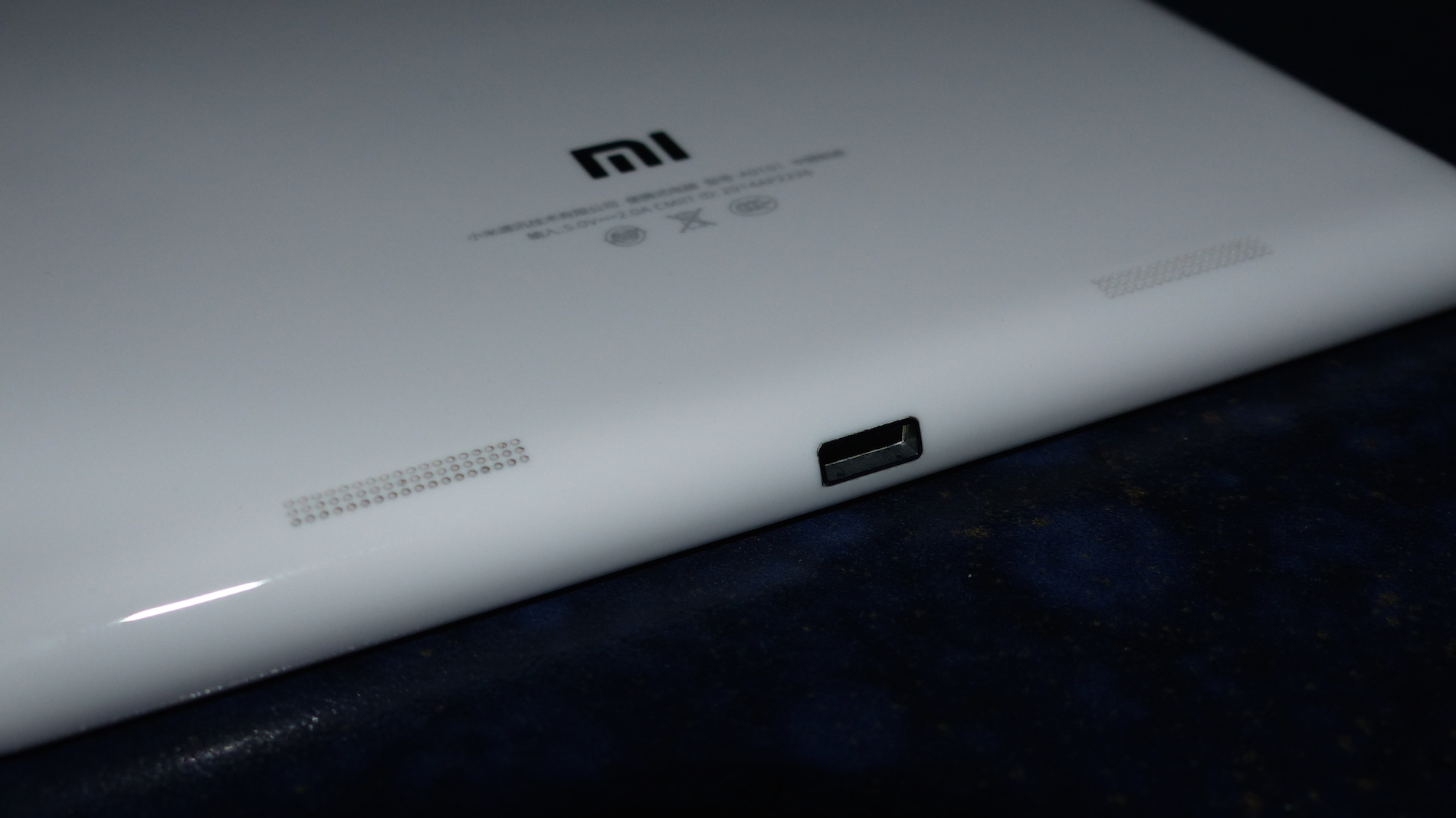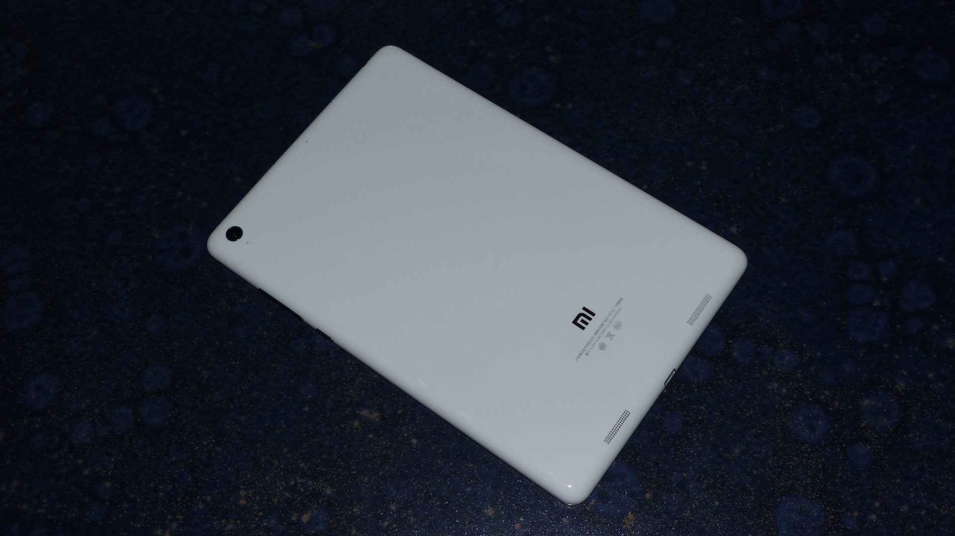Na da komme ich doch gerade vom Thema ab! Nun also zurück zum MiPad. Eine Schönheit aus Polycarbonat und Glas mit einer Frontkamera und satten drei Touch Buttons mit Hintergrundbeleuchtung sowie Status LED auf der Front. Die Kanten schön gerundet mit einer Lautstärkewippe und dem Ein- / Ausschalter an der Seite. Die Rückseite in Hochglanzoptik mit einer kleinen Kamera und Stereolautsprechern an der unteren Kante. Die Verarbeitung astrein ohne scharfe Kanten oder große Spalten. Kurzum: So wie man es sich von einem Tablet wünscht das nicht aus Metall besteht!