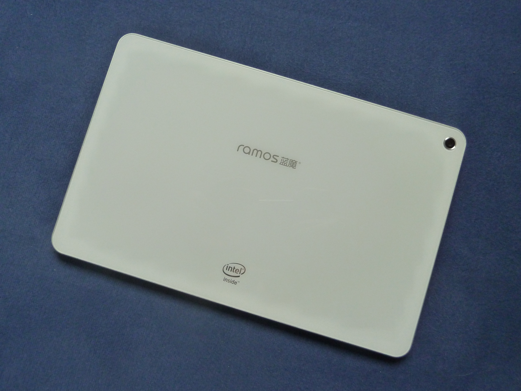 Auf der Rückseite finden wir ebenfalls nicht viel. Hier ist in der oberen Ecke die Rear Kamera angebracht, welche über keinen Blitz verfügt. Zentriert im oberen Bereich finden wir das Ramos Logo, sowie im unteren Bereich ein "Intel Inside" Logo. Erwähnenswert ist hierbei, dass sowohl die Vorder- als auch die Rückseite des Tablets aus Glas gefertigt sind. Somit sollte hier eine hohe Kratzfestigkeit gegeben sein.