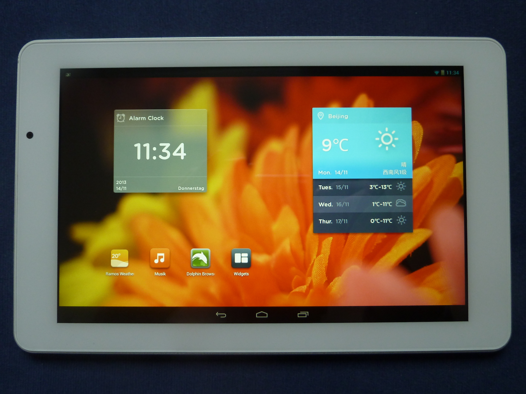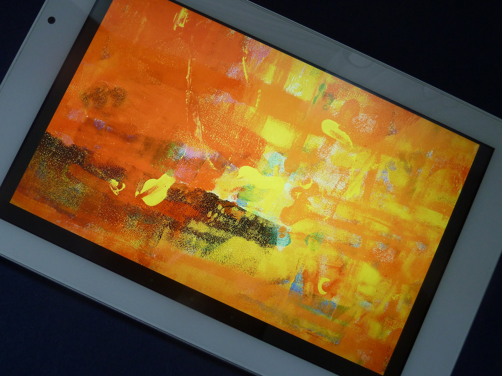 Überzeugt hat uns die herausragende Qualität des Bildschirms. Farben werden kräftig aber dennoch natürlich dargestellt und selbst sehr feine Details auf Fotos kann man auf dem Bildschirm noch problemlos erkennen. Auch der Kontrast stimmt. Bei dunklen Bildern überzeugen die Schwarzwerte sehr, nur auf der oberen Seite fallen am Rand kleine Lightspots auf. Die Leuchtkraft ist als sehr gut zu bewerten und auch draussen kann man bei Sonneneinstrahlung den Bildschirminhalt noch einigermaßen gut erkennen. Die Blickwinkel sind ebenfalls einwandfrei. Selbst bei flacher Betrachtung vom Rand des Tablets aus, kann man den Inhalt noch klar erkennen. Die Reaktionszeit des Panels ist ebenfalls sehr gut. Uns ist keinerlei Nachzieheffekt aufgefallen. Der Touchscreen reagiert ohne Verzögerung und sehr präzise.