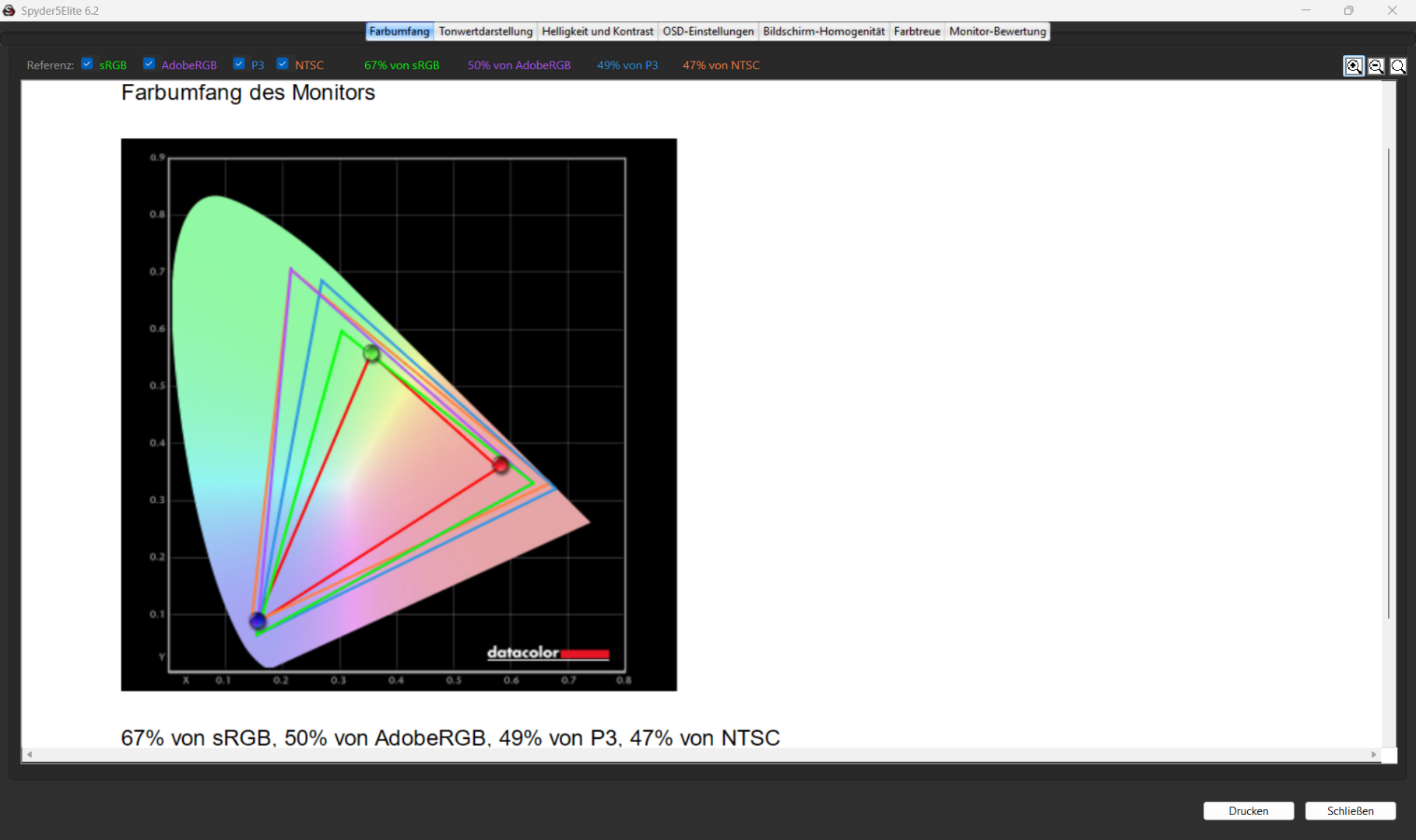 Eins auf den Deckel gibt es für Chuwi allerdings wegen einer Falschangabe auf der Produktseite des Chuwi CoreBook Air. Der Hersteller gibt hier an, dass das Display 100% sRGB unterstützen soll. Das dürften viele auch erstmal glauben, da die Angabe beim CoreBook X korrekt war. Beim CoreBook Air stimmt sie allerdings nicht. In mehreren Messrunden kommen wir zuverlässig auf eine sRGB Abdeckung von 67%, also deutlich schlechter als angegeben und für heutige Verhältnisse im Preissegment auch eher unterdurchschnittlich. Wer nun keinen großen Wert auf höchste Farbtreue legt, muss sich daran nicht weiter stören, doch frech ist das Vorgehen von Chuwi dennoch. Ob nun Absicht oder ein einfacher Fehler: vorkommen sollte so etwas nicht, egal in welcher Preisklasse.