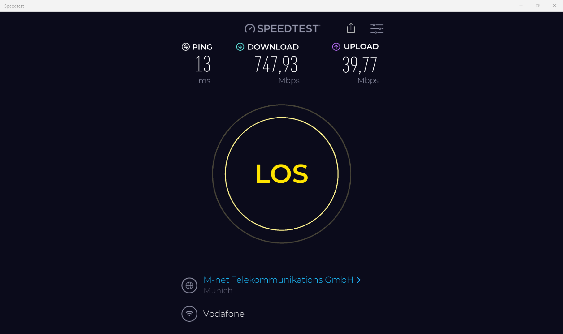 Im Test mit einer Fritz!Box 6660 Cable konnte neben dem Router ein Durchsatz von 747Mbit/s erzielt werden. Der Empfang hat sich im Test als exzellent erwiesen. In der Küche, welche die schlechteste Abdeckung im Haus hat und wo viele Geräte Aussetzer zeigen, bleibt die WLAN Verbindung mit dem CoreBook Air durchgehend stabil. Am üblichen Teststandort ein Stockwerk unter dem Router erreicht das CoreBook Air noch exzellente 314Mbit/s, behält also die 5GHz Verbindung bei.