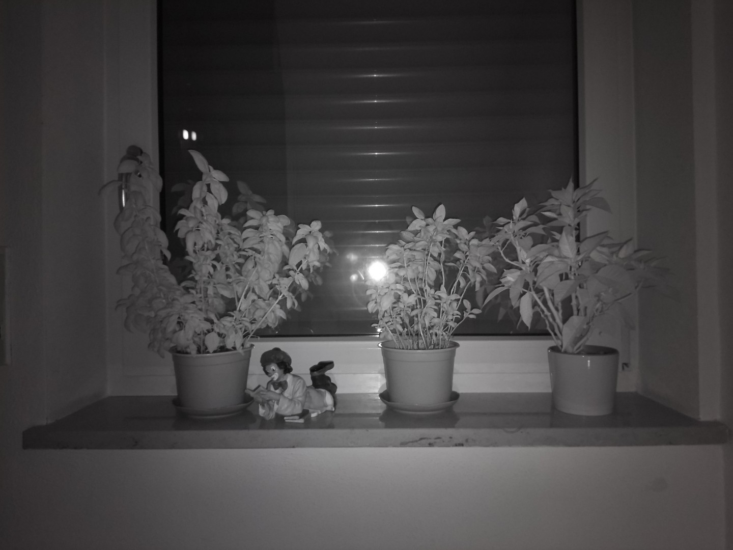 Die 20MP Nachtsichtkamera liefert Schwarz-Weiß-Fotos im Infrarotbereich. Tendenziell sehen die Aufnahmen besser aus als mit der Hauptkamera. Insbesondere was die Lichtausbeute angeht, hat die Nachtsichtkamera deutlich die Nase vorn. Im Nahbereich liefert ein Infrarotscheinwerfer mit zwei LEDs zusätzlich Licht. Die Campinglampe kann ebenfalls genutzt werden, um die Reichweite der Ausleuchtung zu erhöhen.