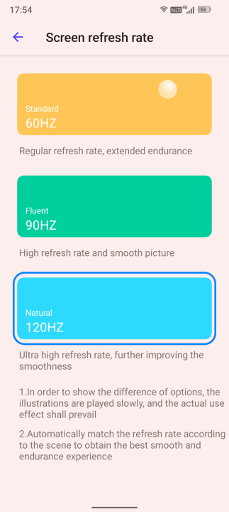 Das Fossibot F102 bietet gängige Display Einstellungen wie Helligkeit inklusive Automatik, einen Hell- und Dunkelmodus, einen Nachtmodus, Einstellungen für den Bildschirm Timeout und das automatische Aktivieren beim Anheben, Skalierung und Textgröße. Zudem gibt es die Möglichkeit, die Drop-Notch mit einem schwarzen Hintergrund für die Info-Leiste zu verstecken. Zur Steuerung gibt es On-Screen Tasten oder Vollbild-Gesten zur Auswahl. Die Aktualisierungsrate des Bildschirms kann manuell auf 120Hz, 90Hz oder 60Hz festgelegt werden. Über dem Display befindet sich eine RGB Benachrichtigungs-LED, welche grundlegend konfiguriert werden kann. Die LED kann auf Benachrichtigungen, den Ladestand beim Aufladen und auf niedrigen Akkustand hinweisen.