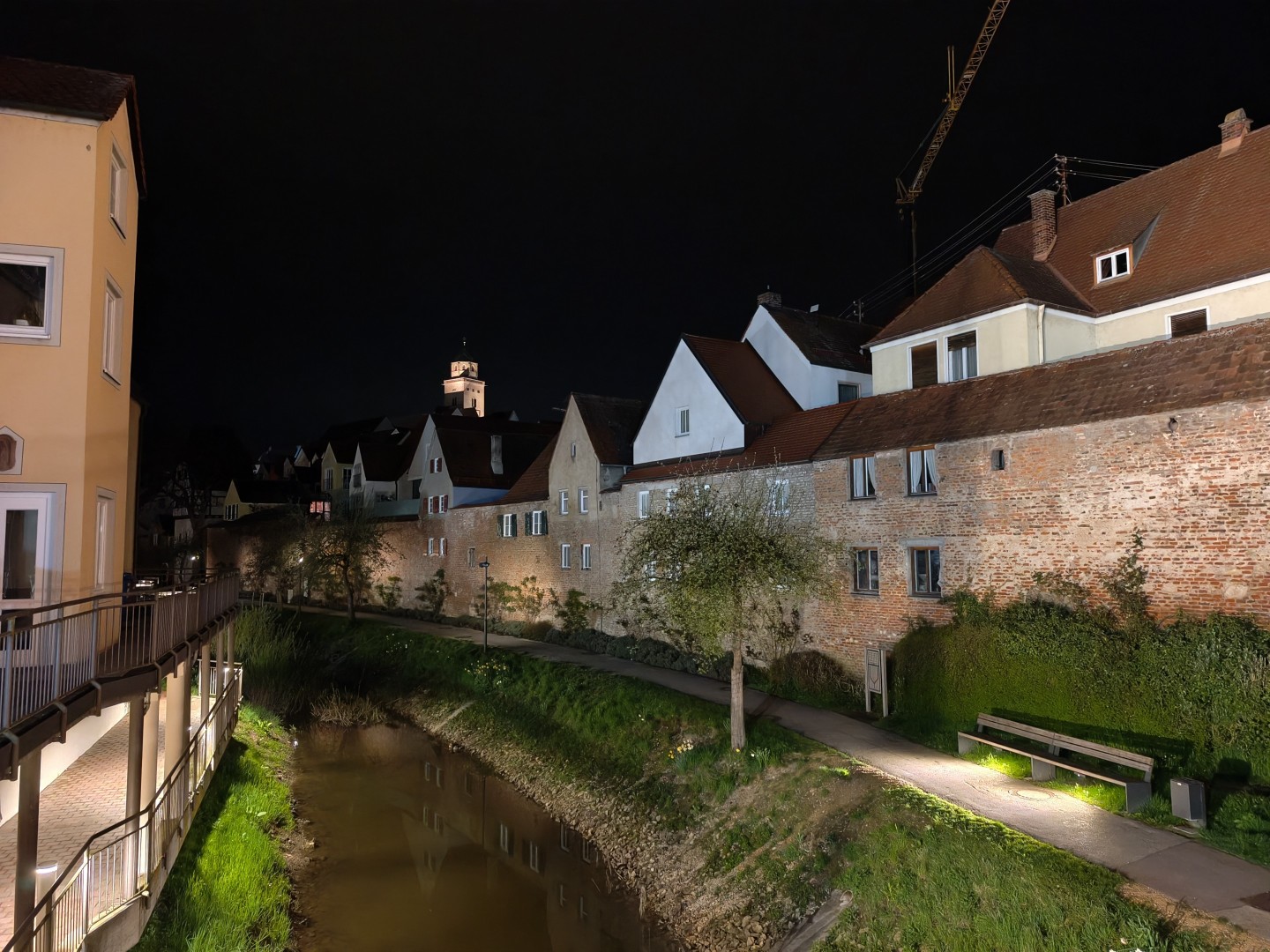 Bei Nachtfotos im Nachtmodus liefert das Honor Magic 8 Pro Air mit der Hauptlinse erfreulich gute Ergebnisse. Die Lichtausbeute fällt auch bei eher schlecht ausgeleuchteten Szenen gut aus. Farblich wirken die Bilder auch hier etwas stärker gesättigt als in der Realität, unterm Strich aber trotzdem ansprechend. Auch bei Nacht funktioniert der Weißabgleich recht gut. Der Dynamikumfang ist zufriedenstellend mit nur leichter Halo-Bildung an Lichtquellen, jedoch keinem Clipping. Die etwas zu geringe Bildschärfe / matschige Detaildarstellung ist das einzige größere Manko, was ja auch bei den Tageslichtaufnahmen schon aufgefallen ist.