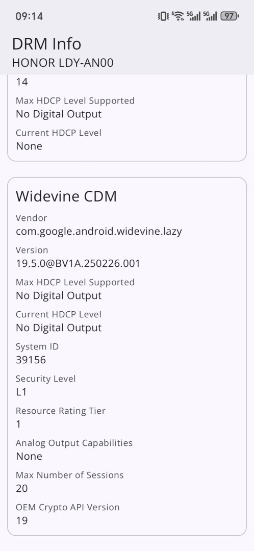 | DRM Technologien | ClearKey CDM, Widevine Level 1 DRM |