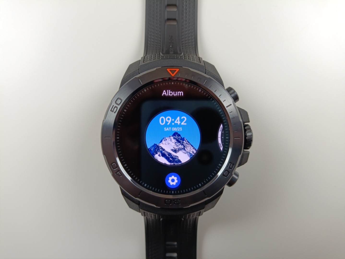 Kontrastreiche Watchfaces kommen mit der AMOLED Technik vor allem bei Dunkelheit sehr gut zur Geltung. Die knackige Farbdarstellung hinterlässt einen lebendigen Eindruck. Bei seitlicher Betrachtung bleibt das Display problemlos ablesbar. Bei direkter Sonneneinstrahlung ist die Mibro GS Explorer weiterhin gut ablesbar. Die hohe angegebene Peak-Helligkeit von 1500 Nits scheint zu stimmen. Zumindest kommt die Smartwatch gegen die Sonne problemlos an. Die Displayhelligkeit wird automatisch mit einem Umgebungslichtsensor gesteuert, kann auf Wunsch aber auch manuell geregelt werden.