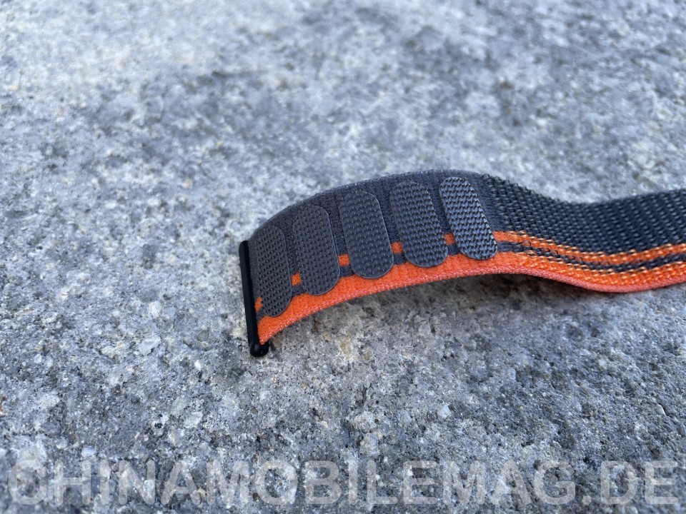Mit dem relativ großen Display und dem auf den Outdooreinsatz optimierten Design, zielt die Mibro GS Explorer auf Kunden ab, die nicht gegen etwas größere Uhren haben. Mit einer Gehäusebreite von 51,1mm und Höhe von 52,5mm (Lünetten-Durchmesser 46,3mm) füllt die Uhr ein breites Handgelenk aus. Wer sehr dünne Arme hat, könnte sich daran stören. Das Gewicht ist mit 67g inklusive des Werks-Armbandes spürbar, allerdings keineswegs störend, solange das Armband für einen guten Halt sorgt. Das ist beim Werks-Armband der Fall. Wer es etwas leichter haben will, kann das mitgelieferte Stoff-Armband mit Klettverschluss nutzen. Ohne montiertes Armband wiegt die Mibro GS Explorer 47g. An der Smartwatch können übrigens beliebige Armbänder im 22mm Format befestigt werden. Die Fixierung erfolgt klassisch mit Federstegen.