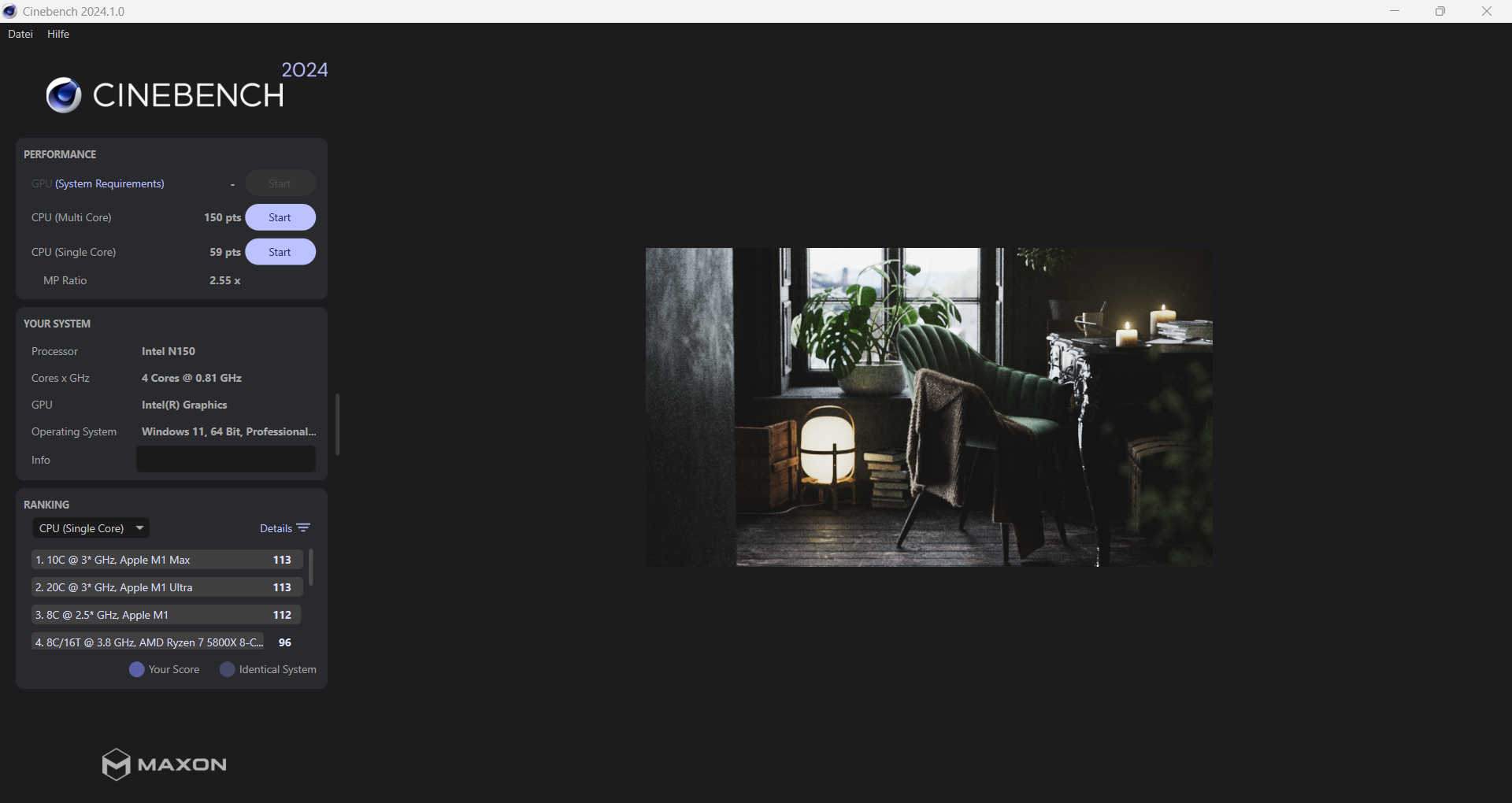 Mit dem Intel N150 bewegt sich der Minix Z150-0dB in derselben Leistungsklasse wie Mini PCs mit dem älteren Intel N100. Die Zielgruppe sind Anwendungsfälle mit geringen Leistungsansprüchen, bei denen eher der Verbrauch im Vordergrund steht. In den Benchmarks zeigen sich leichte Zuwächse gegenüber dem N100, der große Schwachpunkt bleibt jedoch die GPU. Für GPU-lastige Anwendungen eignet sich der Mini PC deshalb nicht, auch Gaming fällt abgesehen von sehr einfachen oder ganz alten Titeln flach.