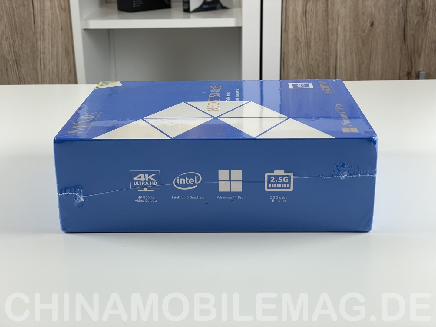 Optisch setzt Minix auf ein schlichtes, leicht industriell anmutendes Design. Das Metall ist vollständig mit einer robusten schwarzen Pulverbeschichtung versehen. Die Front bleibt komplett aufgeräumt und zeigt weder Anschlüsse noch Tasten, lediglich ein Reset-Loch ist vorhanden. Power-Taste und Anschlüsse verteilen sich auf die linke und rechte Seite, während die WLAN Antennen an der Rückseite montiert werden. An der Unterseite sorgen Gummifüße für rutschfesten Stand und schaffen etwas Bodenfreiheit zur besseren Wärmeabstrahlung.