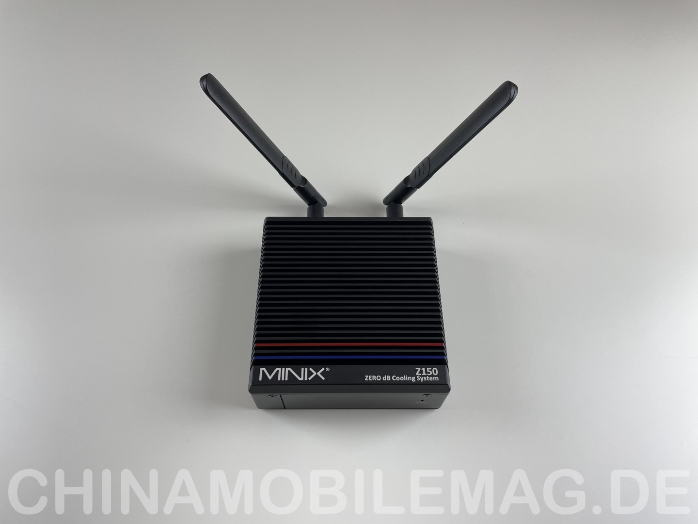 Durch die externen Antennen liefert der Minix Z150-0dB eine recht gute WLAN Performance. Zum Einsatz kommt eine Intel AX201 Karte. Im Test mit einer Fritz!Box 6660 Cable wurden direkt neben dem Router 663Mbit/s erreicht. Ein Stockwerk unter dem Router waren es noch 188Mbit/s mit stabiler 5GHz Verbindung. Die Reichweite ist also exzellent im Vergleich zu vielen Mini PCs mit internen Antennen.
