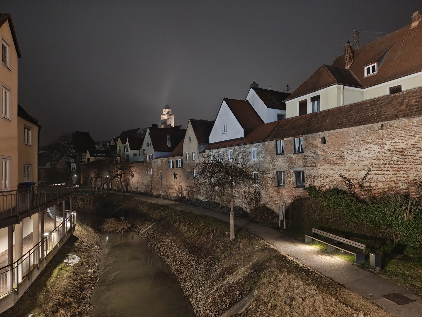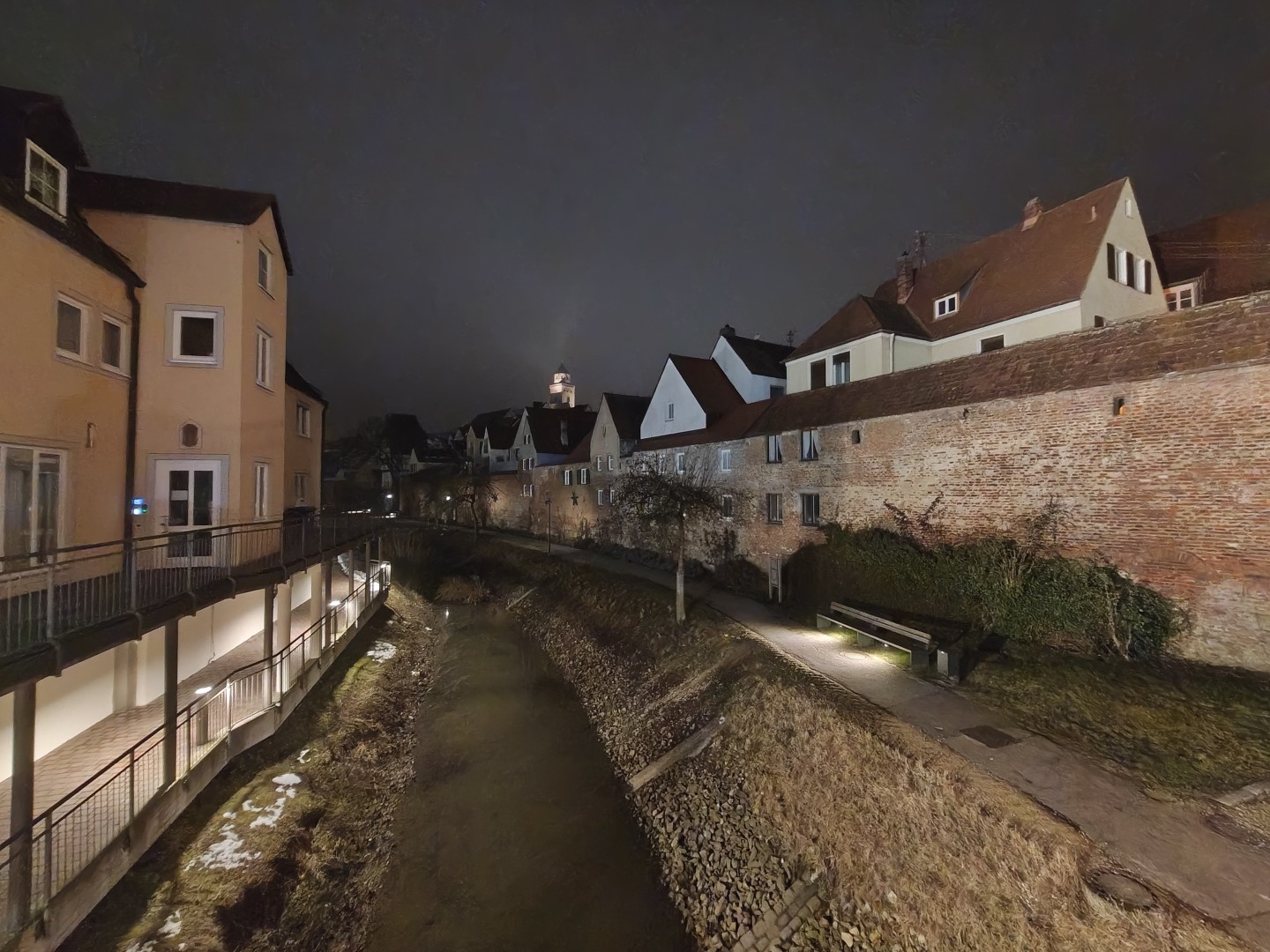 Nachtfotos mit der Ultrawide Kamera sind brauchbar. Das Motorola Edge 70 zeigt hier zwar nochmal deutlich matschigere Texturen auf Distanz, insgesamt aber eine gute Lichtausbeute, einen schönen Dynamikumfang und kein auffälliges Bildrauschen. Auch dunkle Szenen lassen sich noch mit brauchbaren Schnappschüssen einfangen. Bei Nacht ist etwas mehr Verzerrung am Bildrand sichtbar. Der Nachtmodus aktiviert sich auch hier automatisch.