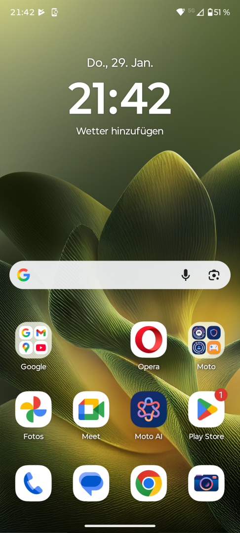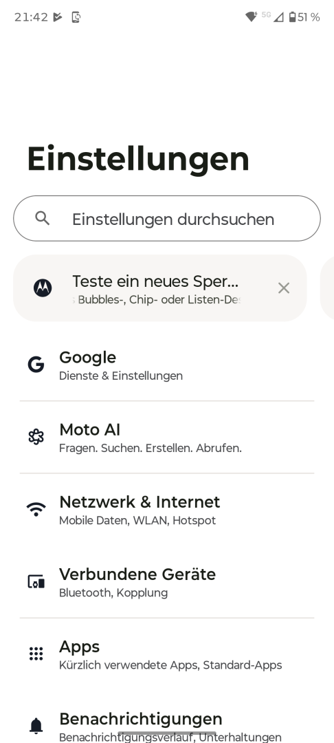 Dual SIM ist leider nur mit einer Mischung aus physischer SIM und eSIM möglich, da nur ein Nano SIM Slot vorhanden ist. Dual eSIM wird nicht unterstützt. Ein kleiner Bug zeigt sich in der Signalanzeige, die immer nur einen Balken anzeigt, auch bei perfektem Empfang. Diesen Bug gab es in der Vergangenheit schon bei manchen anderen Motorola Modellen. Es ist peinlich, dass dieser immer noch auftritt.