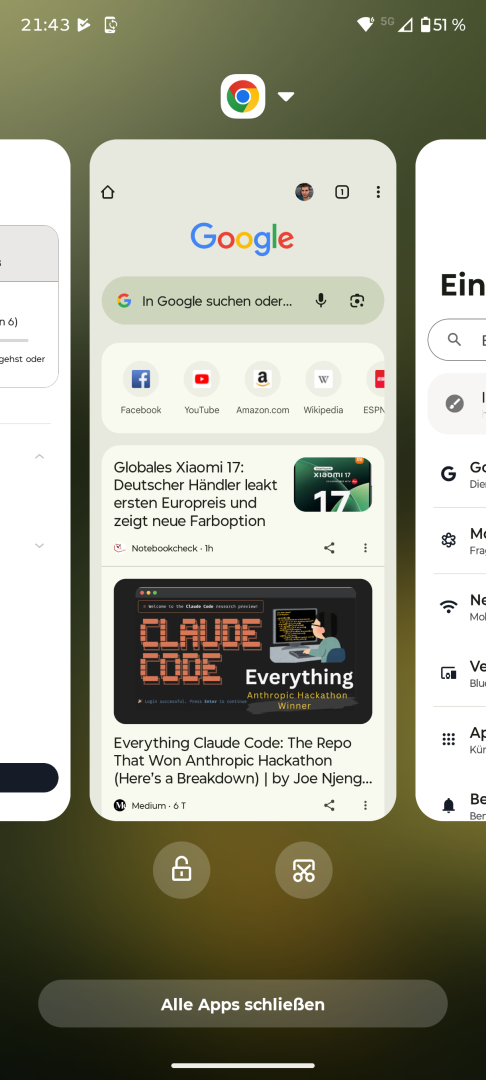 Nichts auszusetzen gibt es am Arbeitsspeicher. Das Motorola Edge 70 kommt mit 12GB LPDDR5X RAM, also schnellem Arbeitsspeicher mit ordentlicher Kapazität. Für die Leistungsklasse ist das mehr als ausreichend. Insgesamt zeigt sich eine gute Multitasking Performance. Mehrere offene Apps ziehen die Performance nicht weiter runter. App Wechsel verlaufen bis auf gelegentliche kleinere leistungsbedingte Ruckler schnell und ansonsten flüssig. 10 offene Apps stellen kein Problem dar, nur das Power Management beendet manchmal Apps, die länger im Hintergrund waren. Das lässt sich aber für Apps konfigurieren, die dauerhaft offen bleiben sollen.