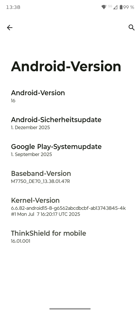 | Android Version | Android 16 Sicherheitspatch im Test: Dezember 2025 |