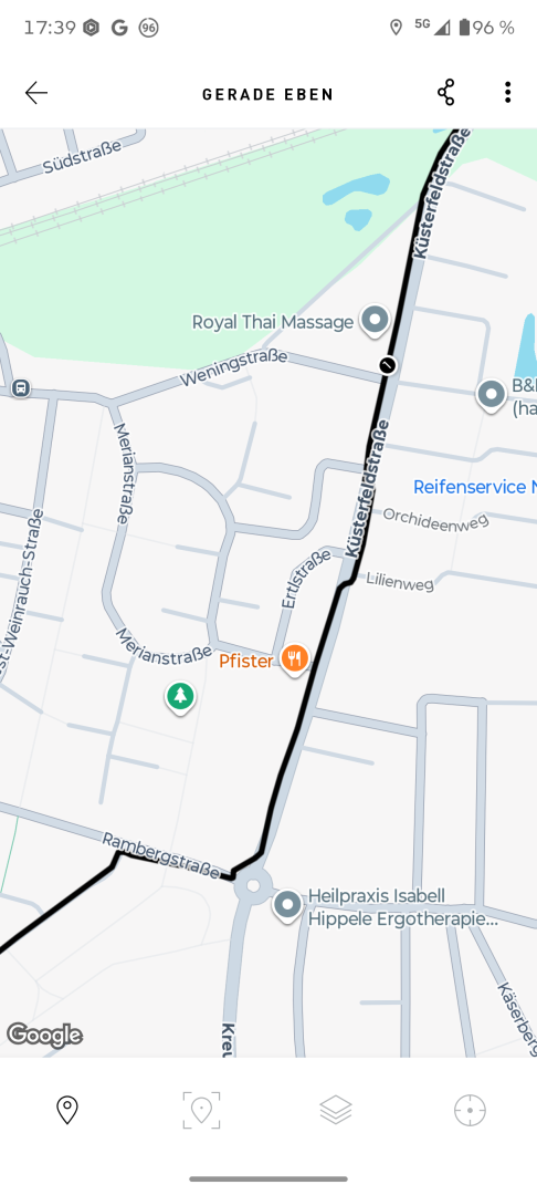 Der GPS Empfang ist gut ohne Auffälligkeiten. Bei bedecktem Himmel wurden 55 Satelliten im Fix erreicht, die Signalstärke war gut und der SNR lag im grünen Bereich. Der Praxistest verlief ohne Aussetzer. Beim GPS Tracking wurde die Strecke zuverlässig aufgezeichnet. Wechsel der Straßenseite sind im Track sichtbar.