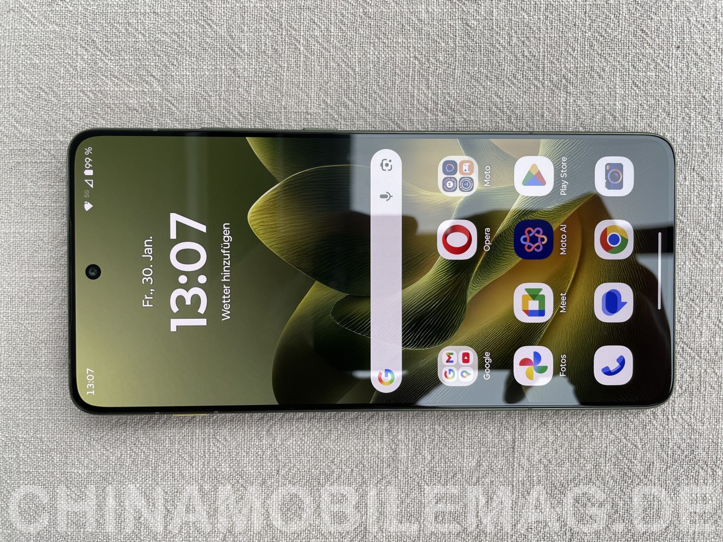 Das Motorola Edge 70 verfügt über ein 6,67 Zoll großes pOLED Panel, das eine angenehme Größe bietet ohne zu groß zu wirken. Die Displayränder fallen sehr schmal und nahezu symmetrisch aus, der Kinnrand ist geringfügig breiter. Die Auflösung liegt etwas über FHD+ und sorgt für eine scharfe Darstellung. Einzelne Pixel sind erst bei sehr kurzem Betrachtungsabstand leicht erkennbar. Das Display ist flach ohne seitliche Rundung ausgeführt. Die Blickwinkel zeigen sich stabil, die Darstellung ist homogen ohne Schattenbildung. Mit 120Hz Bildfrequenz arbeitet das Display flüssig, beim Scrollen bleibt die Darstellung scharf ohne starkes Verwaschen oder Nachziehen. Leider gibt es nur Adaptive Sync ohne Refresh Raten unterhalb von 60Hz.